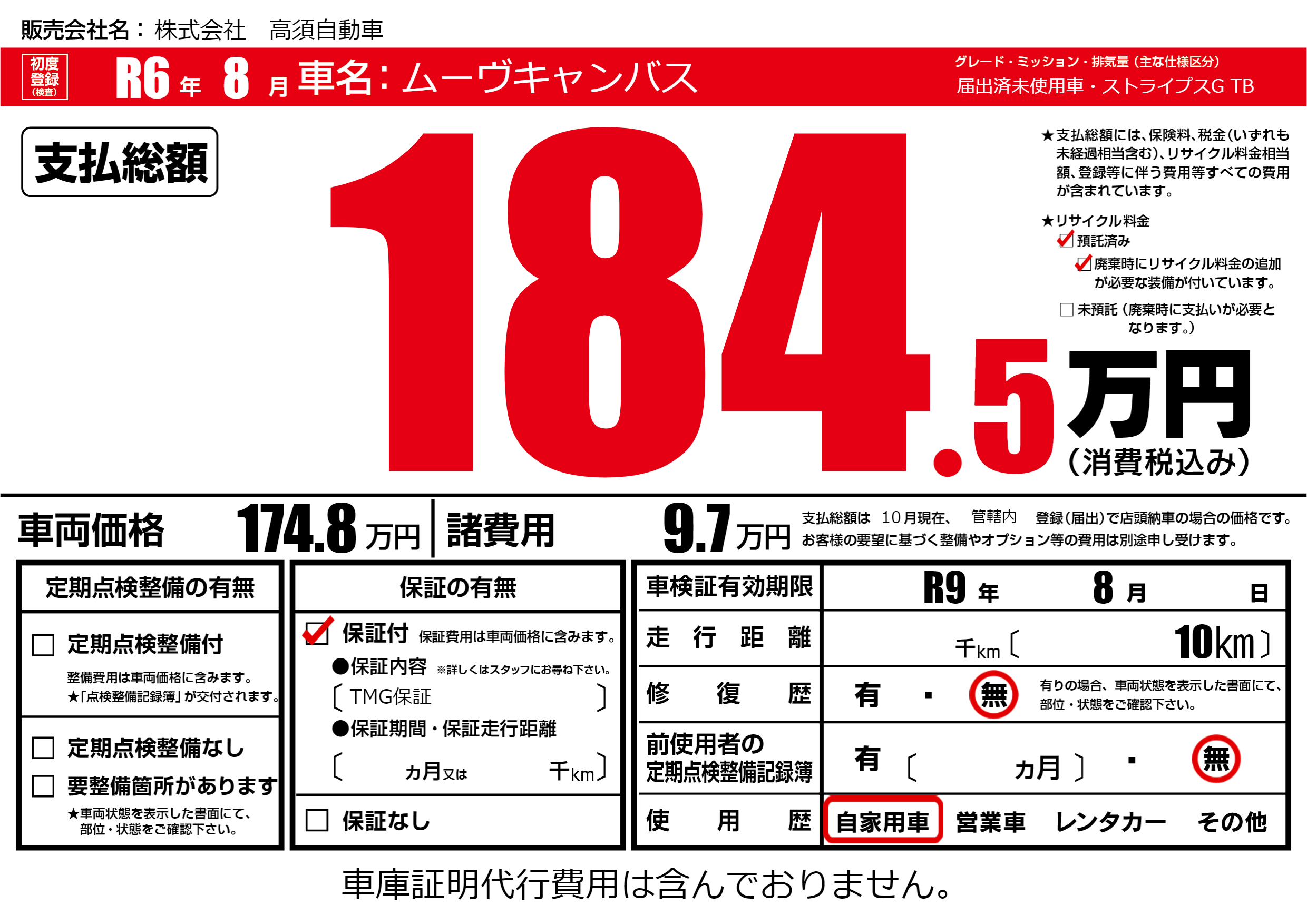 保証付き 保証内容(TMG保証) ---ヶ月または()千kmまで |