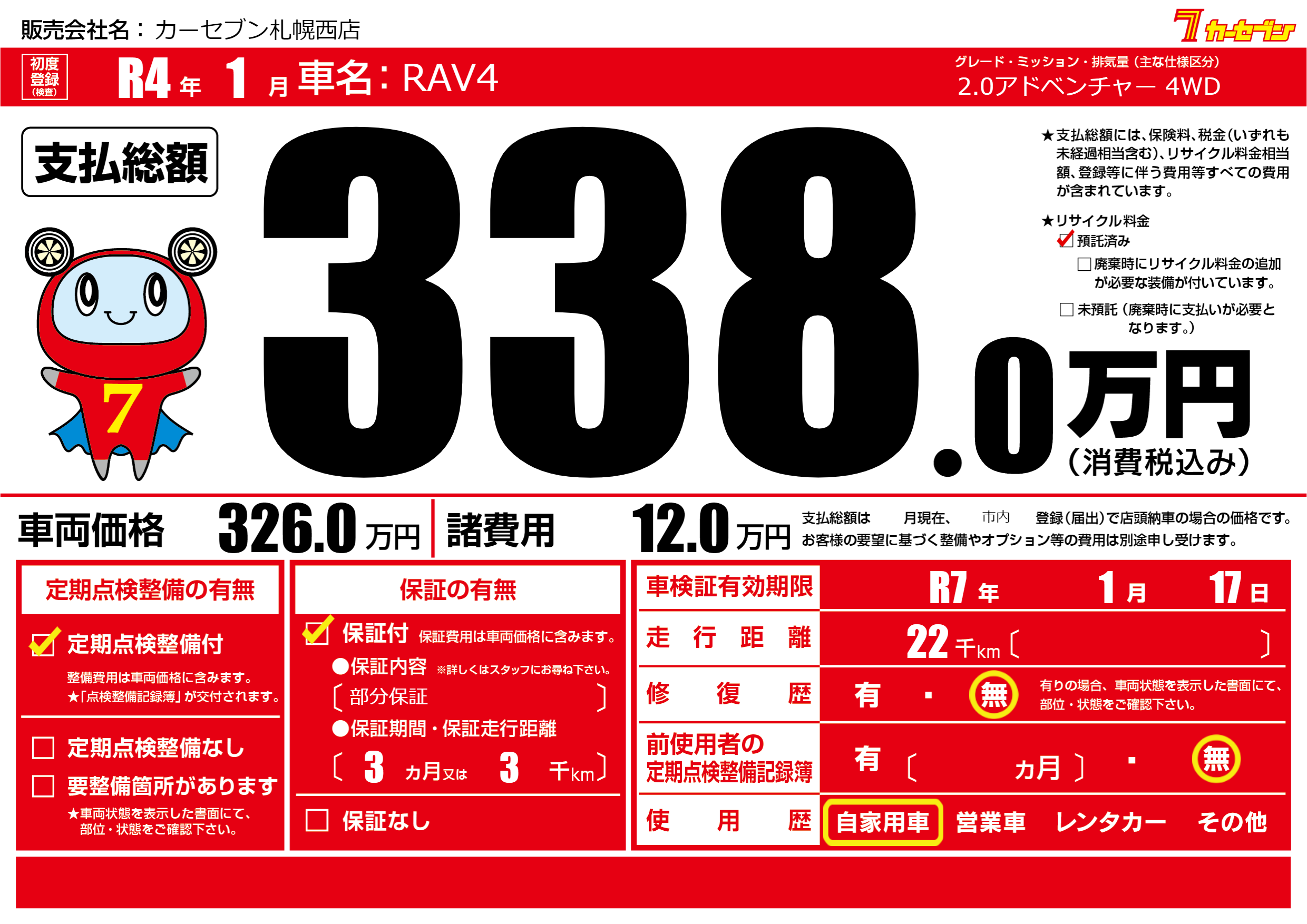 なし | 車検制限 | R7年1月17月 |