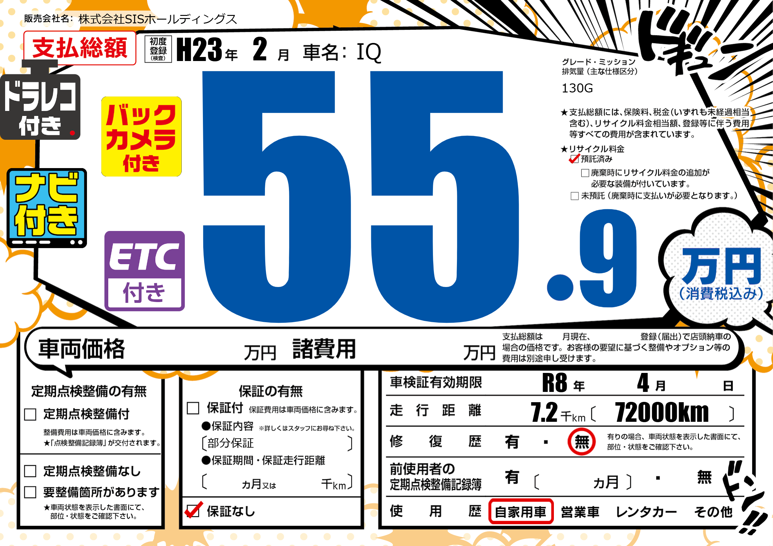 | 走行キロ | 0.7万km | 初年度登録 | H23年2月 |