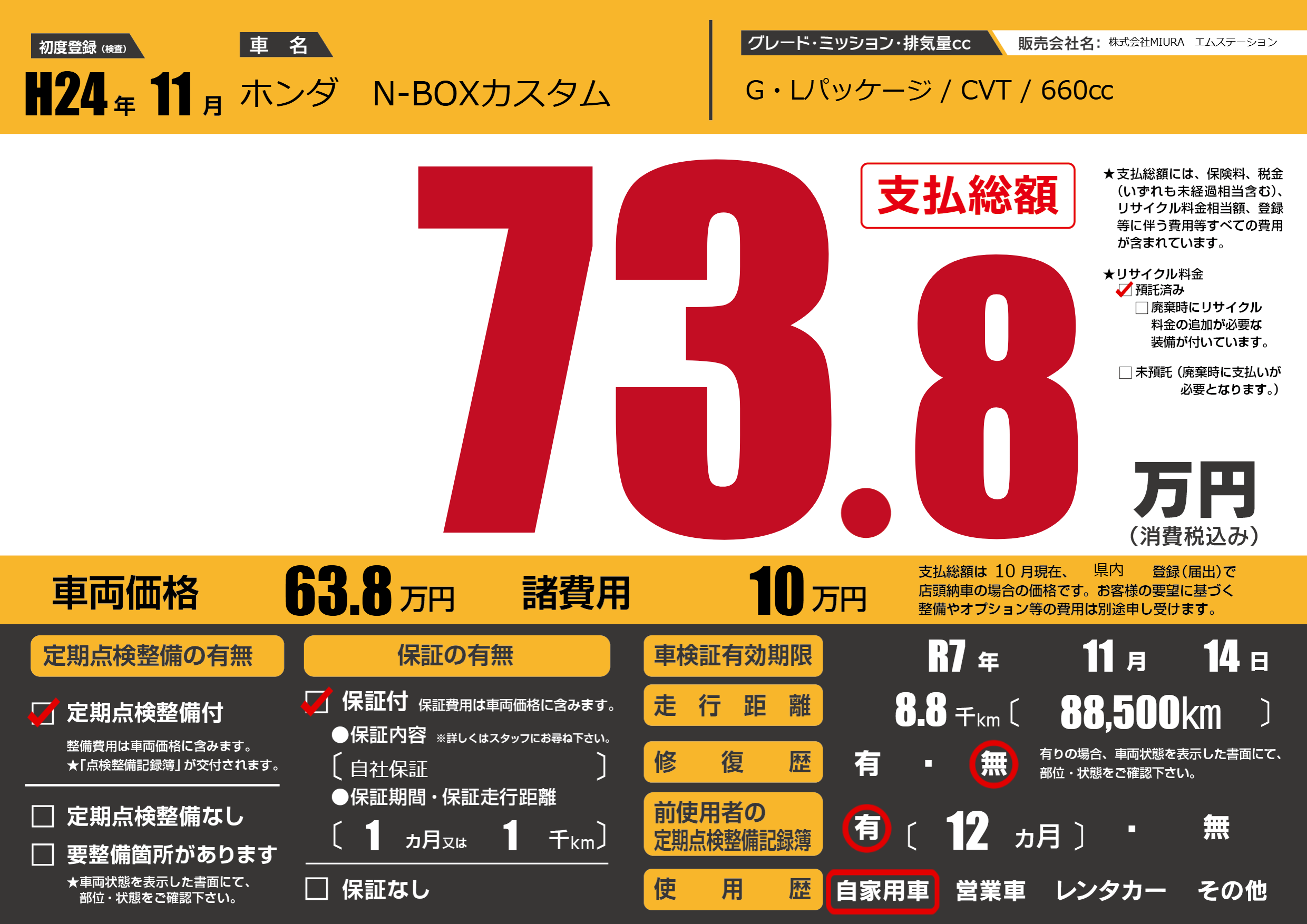 | 車検制限 | R7年 11月 14日 | ||