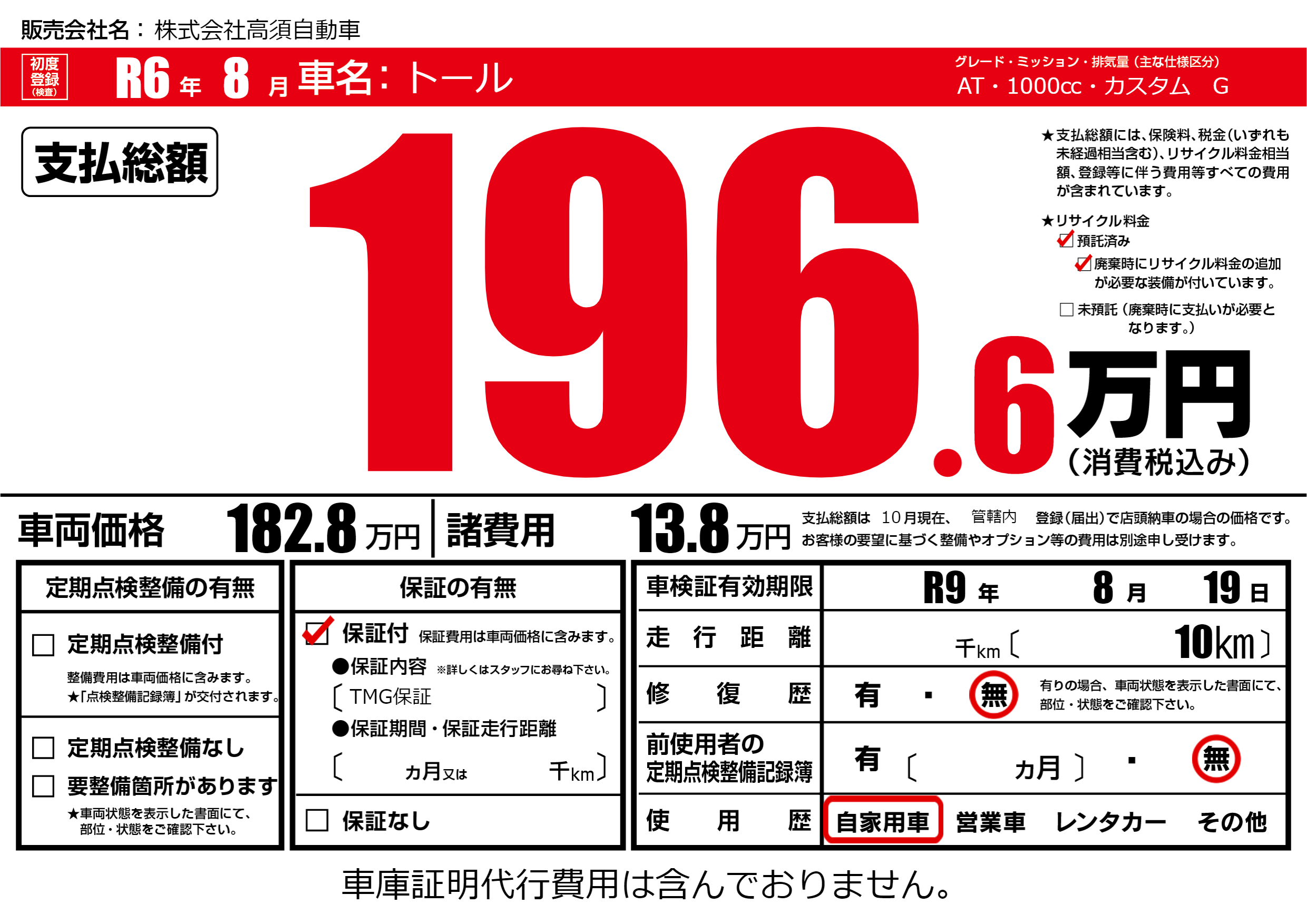 保証付き 保証内容(TMG保証) ---ヶ月または()千kmまで |