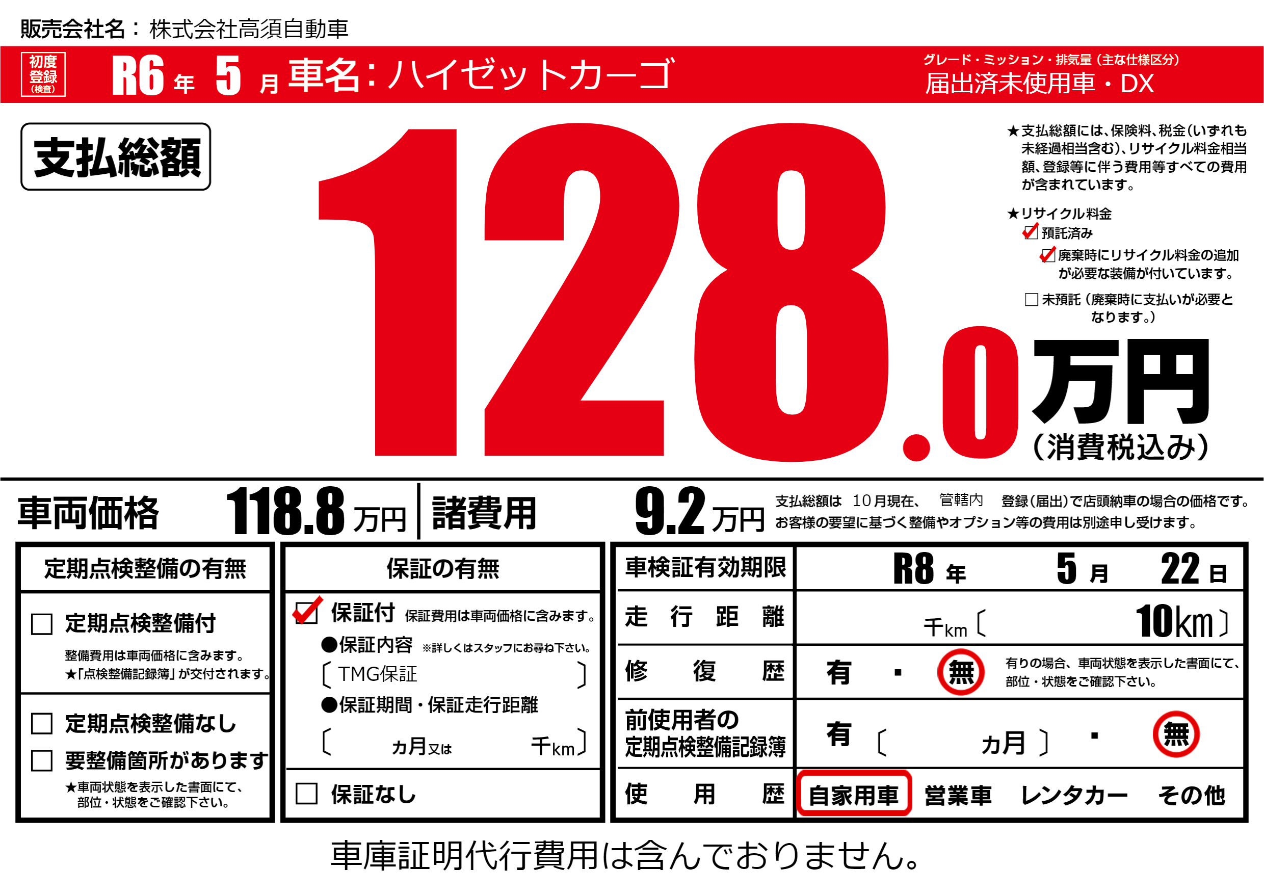 保証付き 保証内容(TMG保証) ---ヶ月または()千kmまで |