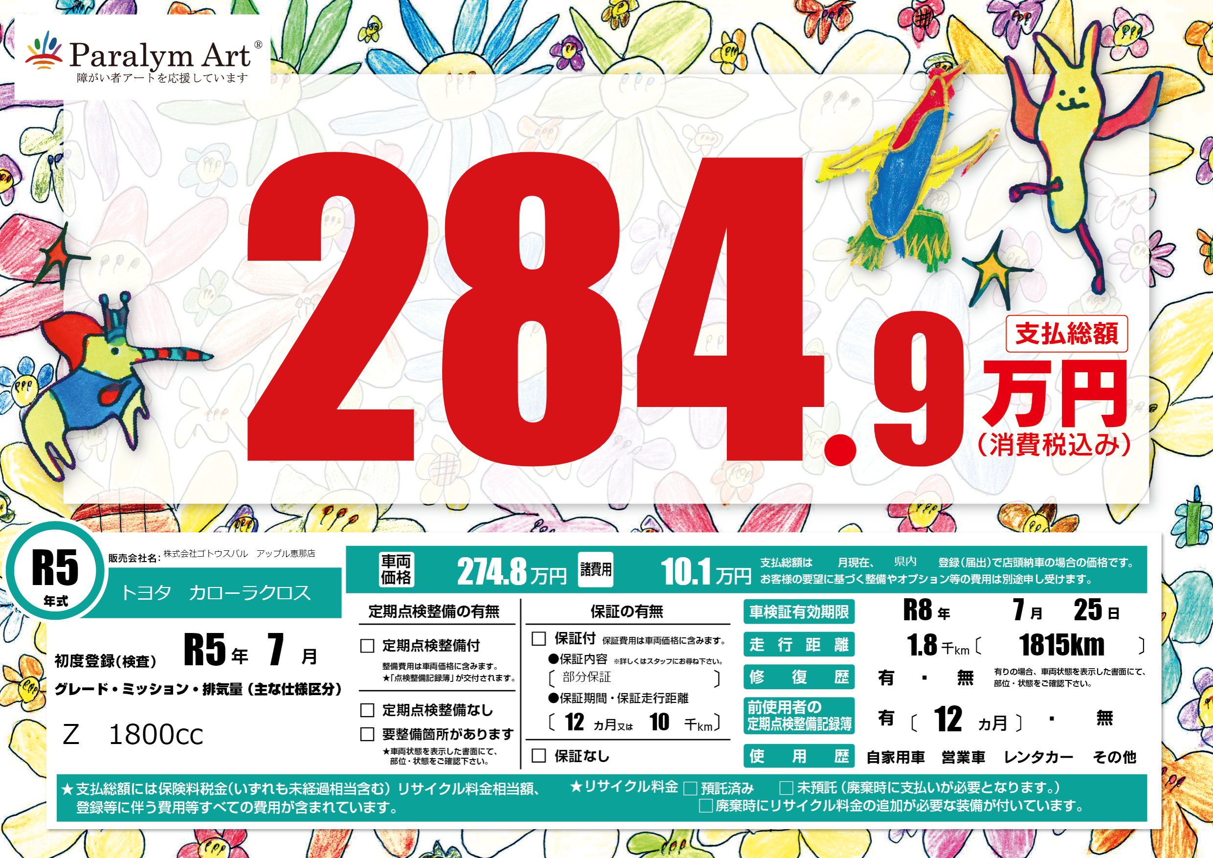 | 走行キロ | 0.1万km | 初年度登録 | R5年7月 |