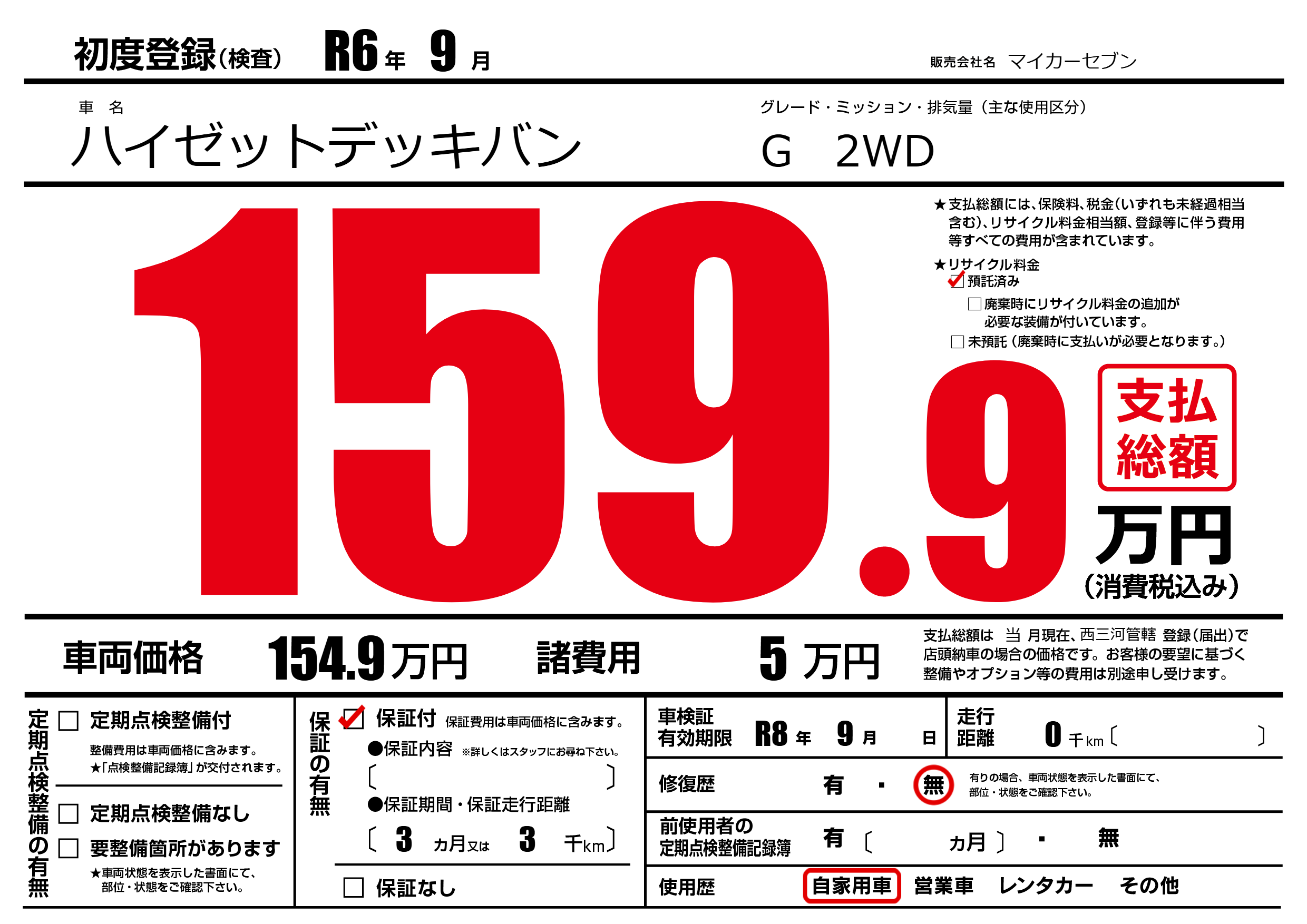 | 走行キロ | - | 初年度登録 | R6年9月 |