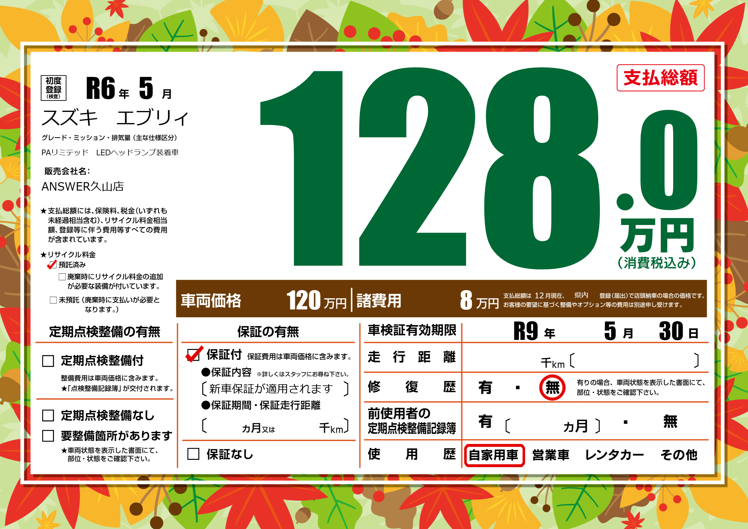 なし | 車検制限 | R9年5月30月 |