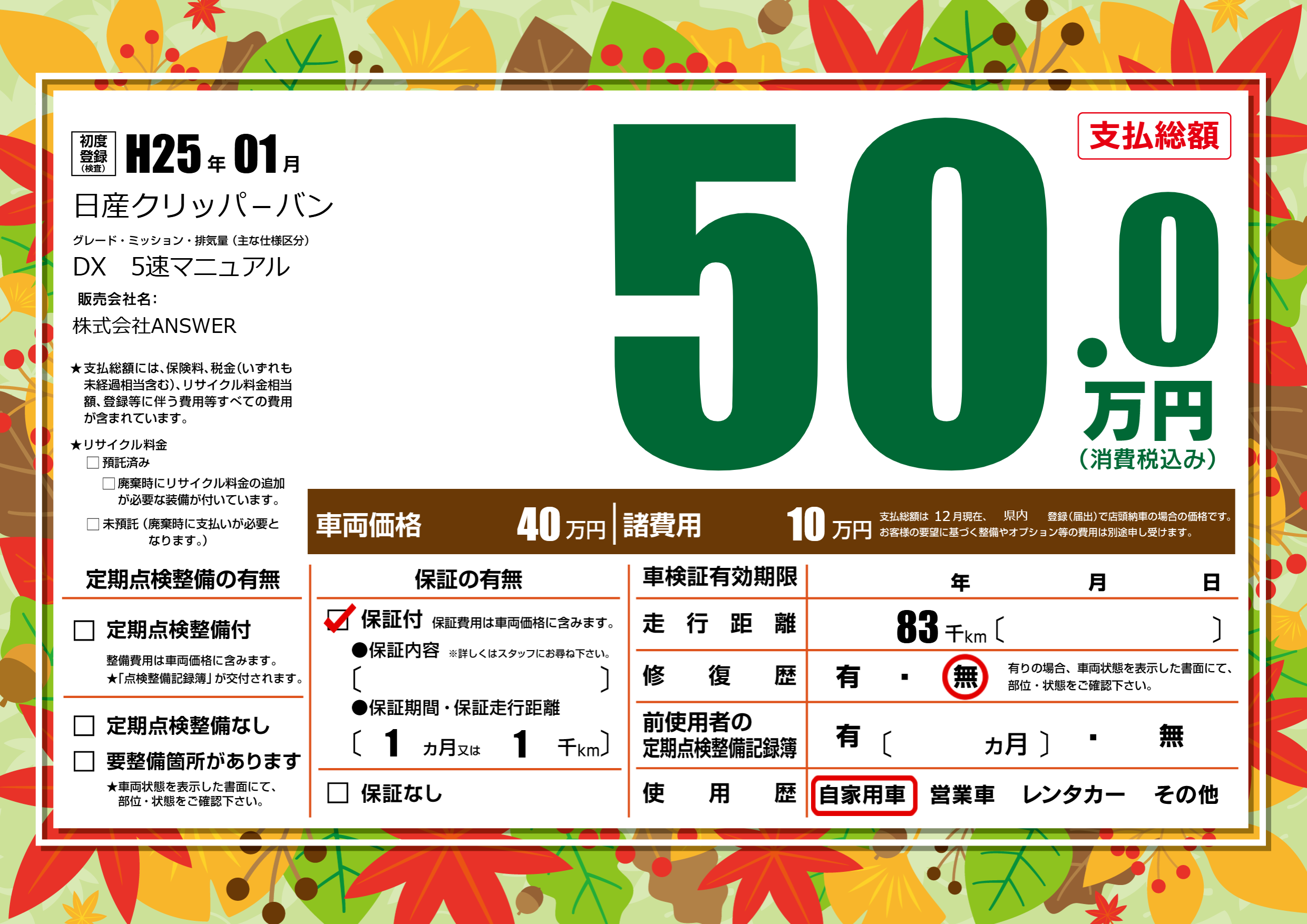 | 車検制限 | - 年 - 月 - 日 | ||