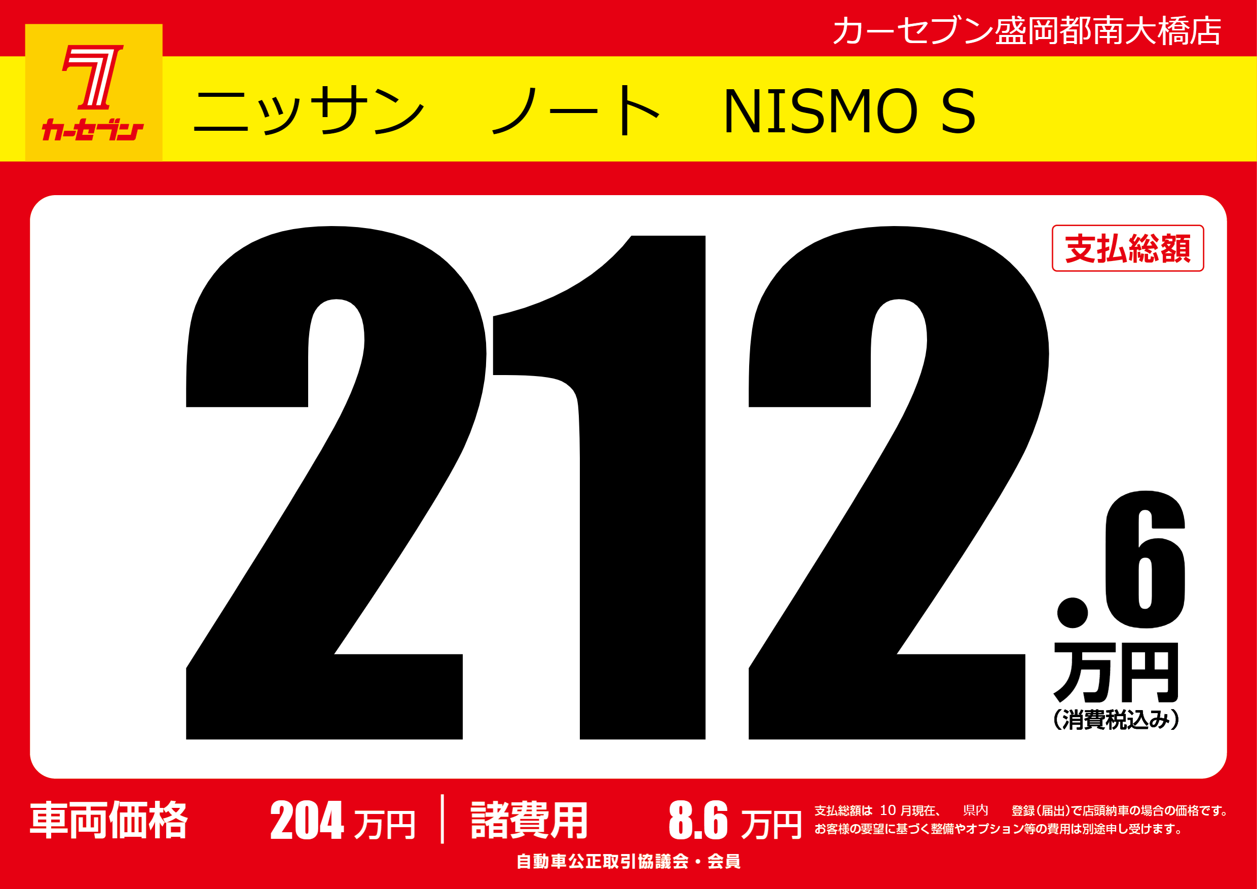 | 車名 | ニッサン ノート NISMO S | グレード ミッション 排気量 |