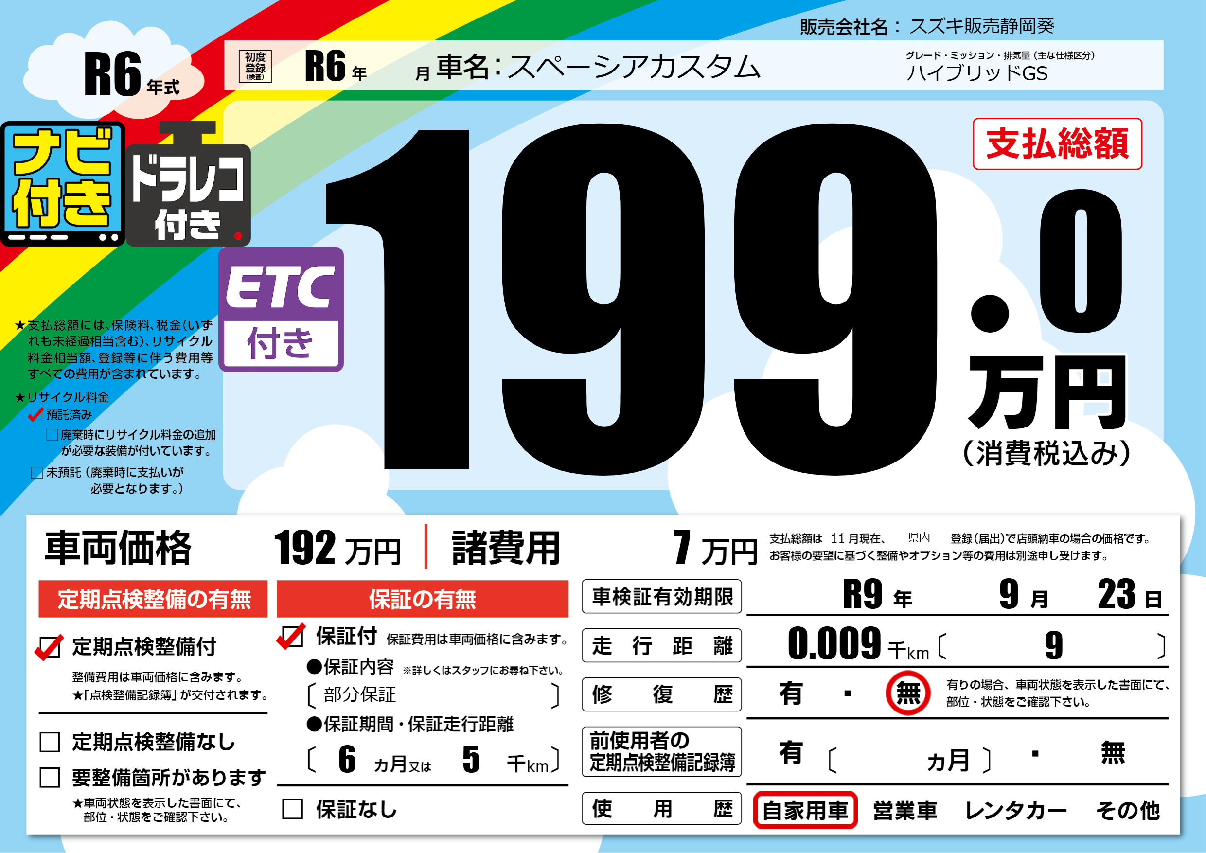 | 車名 | スペーシアカスタム | グレード ミッション 排気量 |