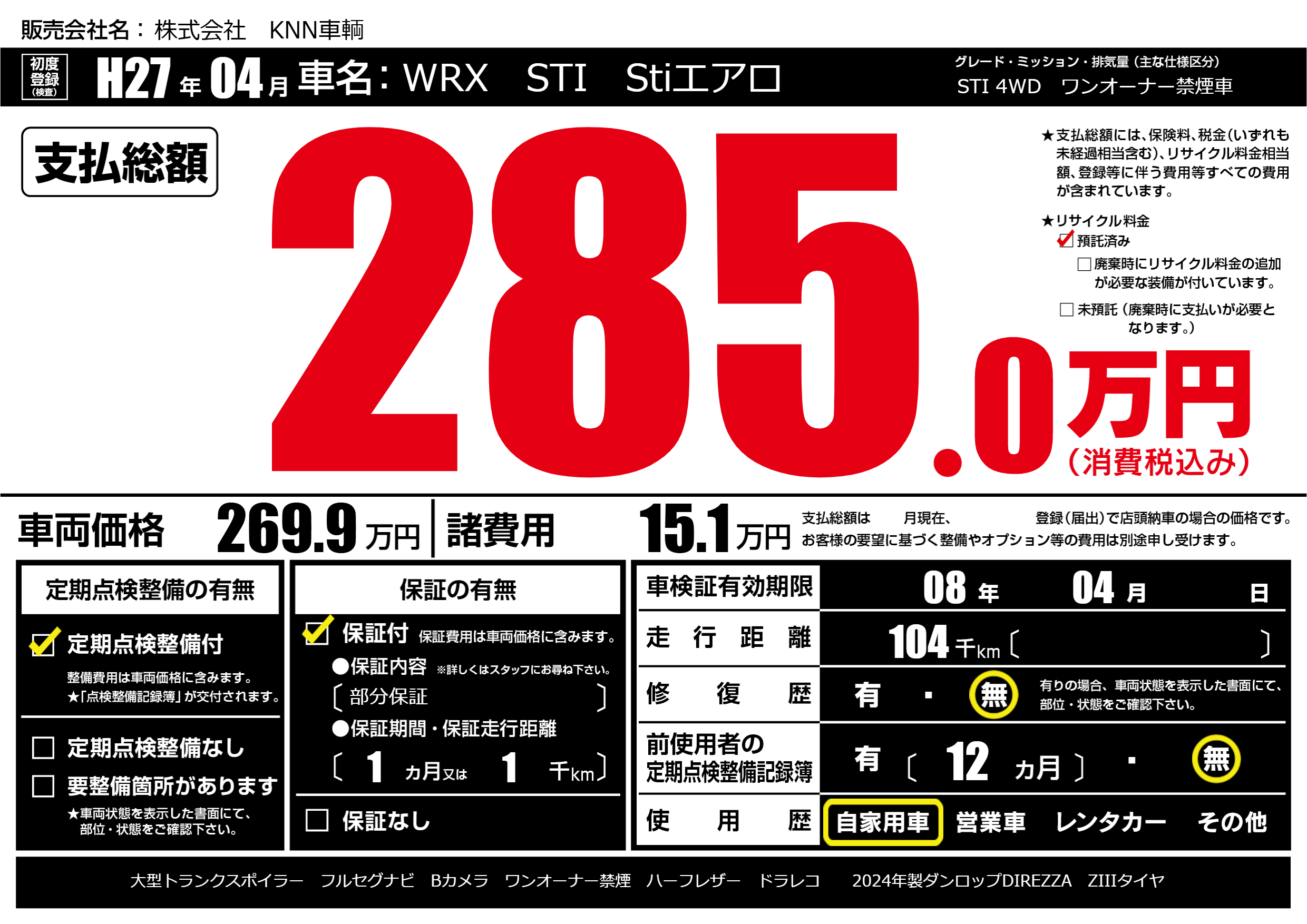 STI 4WD ワンオーナー禁煙車 |
