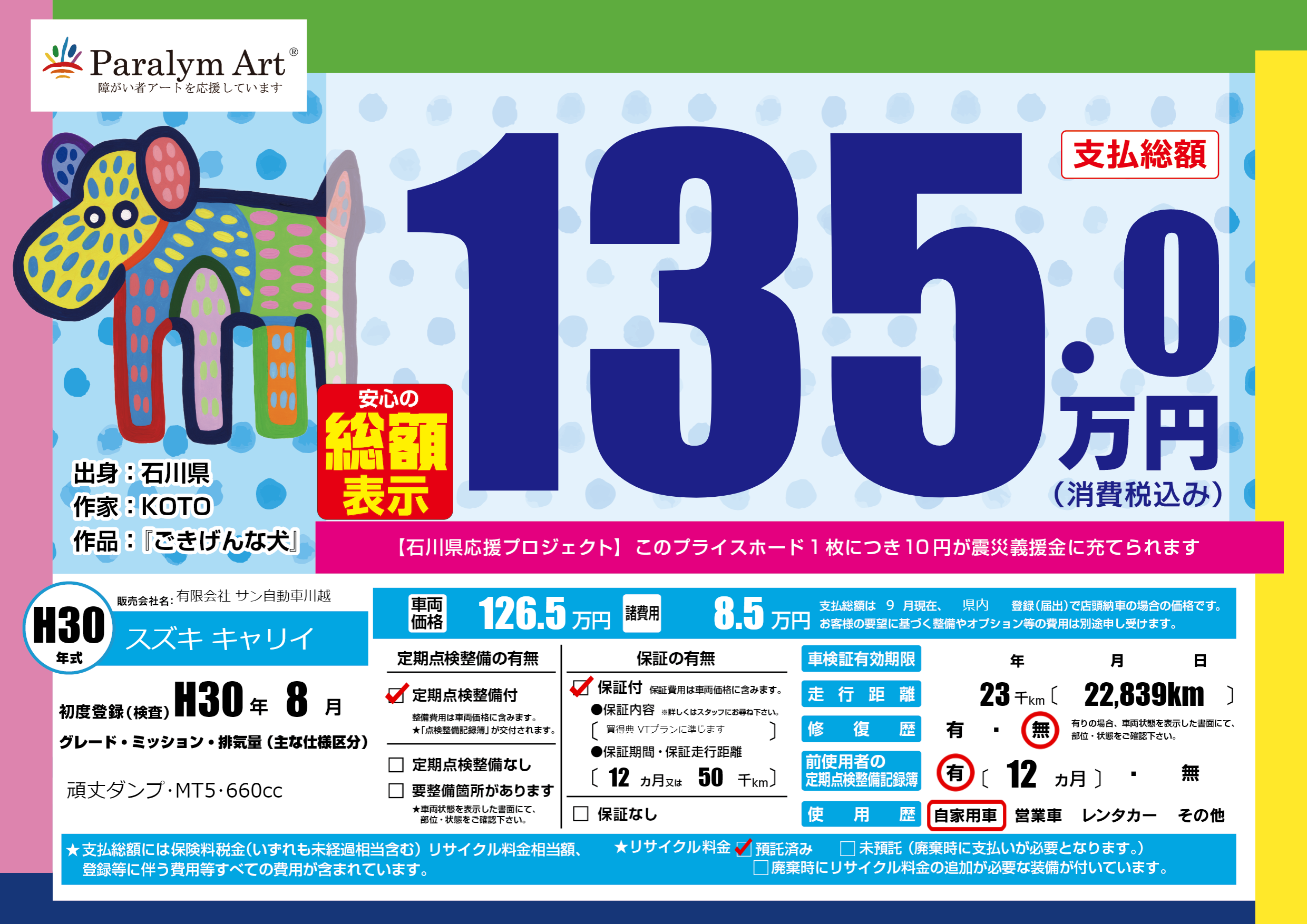 | 走行キロ | 2.3万km | 初年度登録 | H30年8月 |