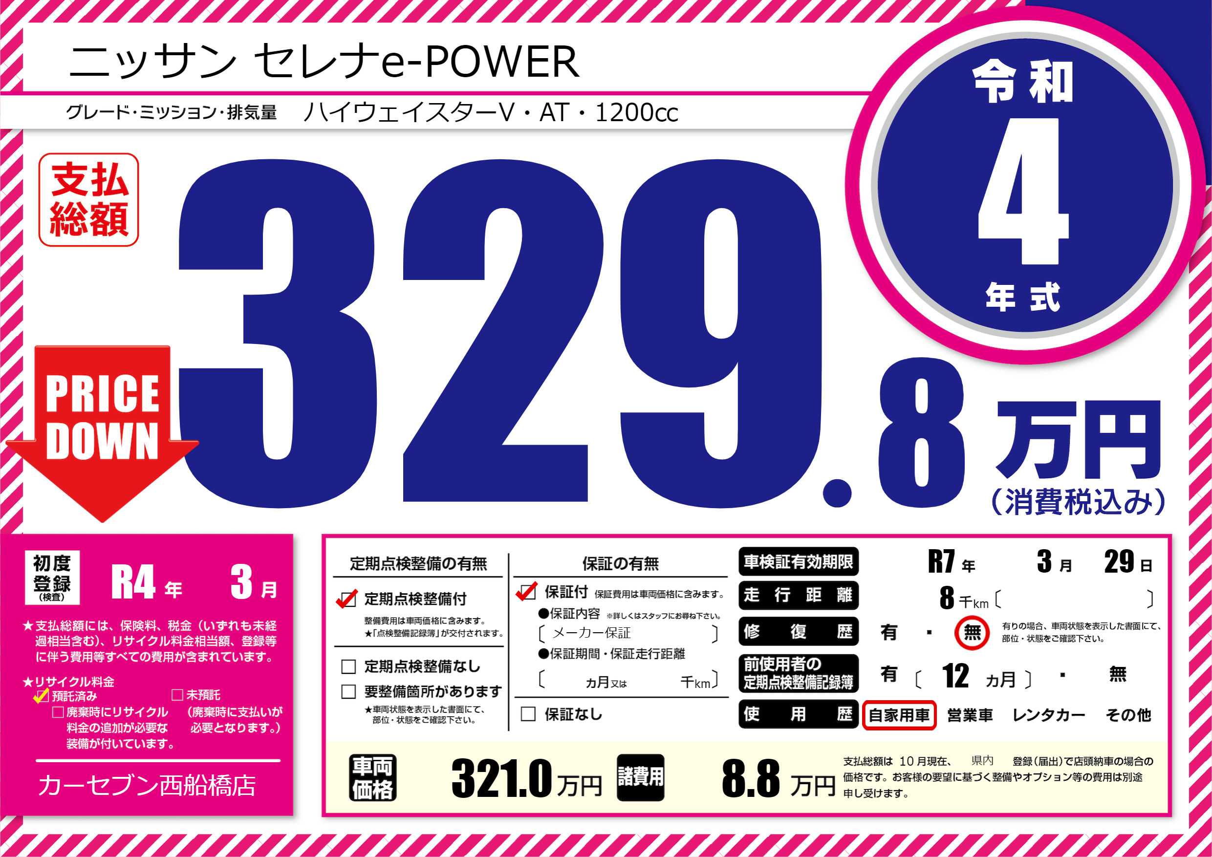 | 車名 | ニッサン セレナe-POWER | グレード ミッション 排気量 |