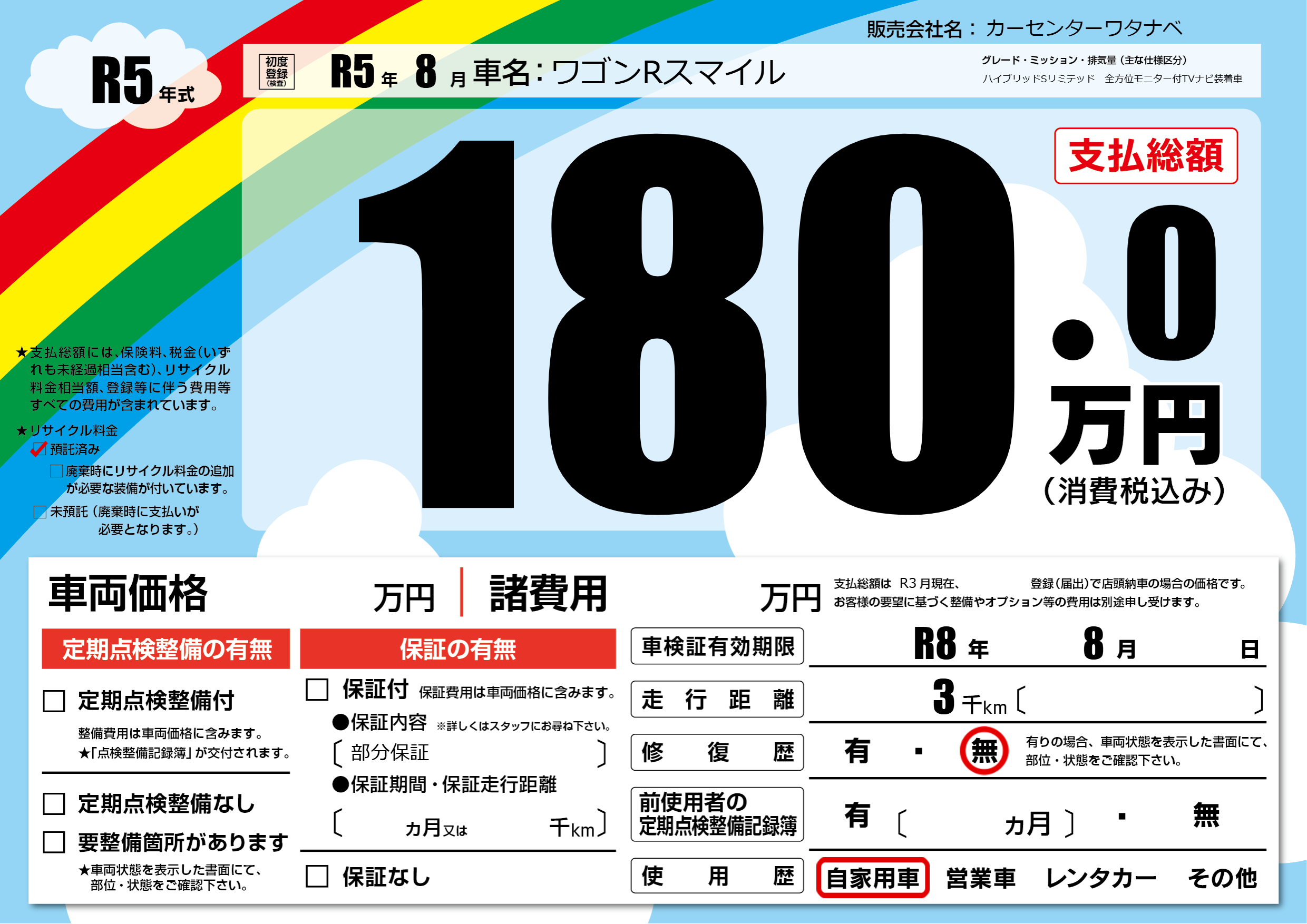 なし | 車検制限 | R8年8月---月 |