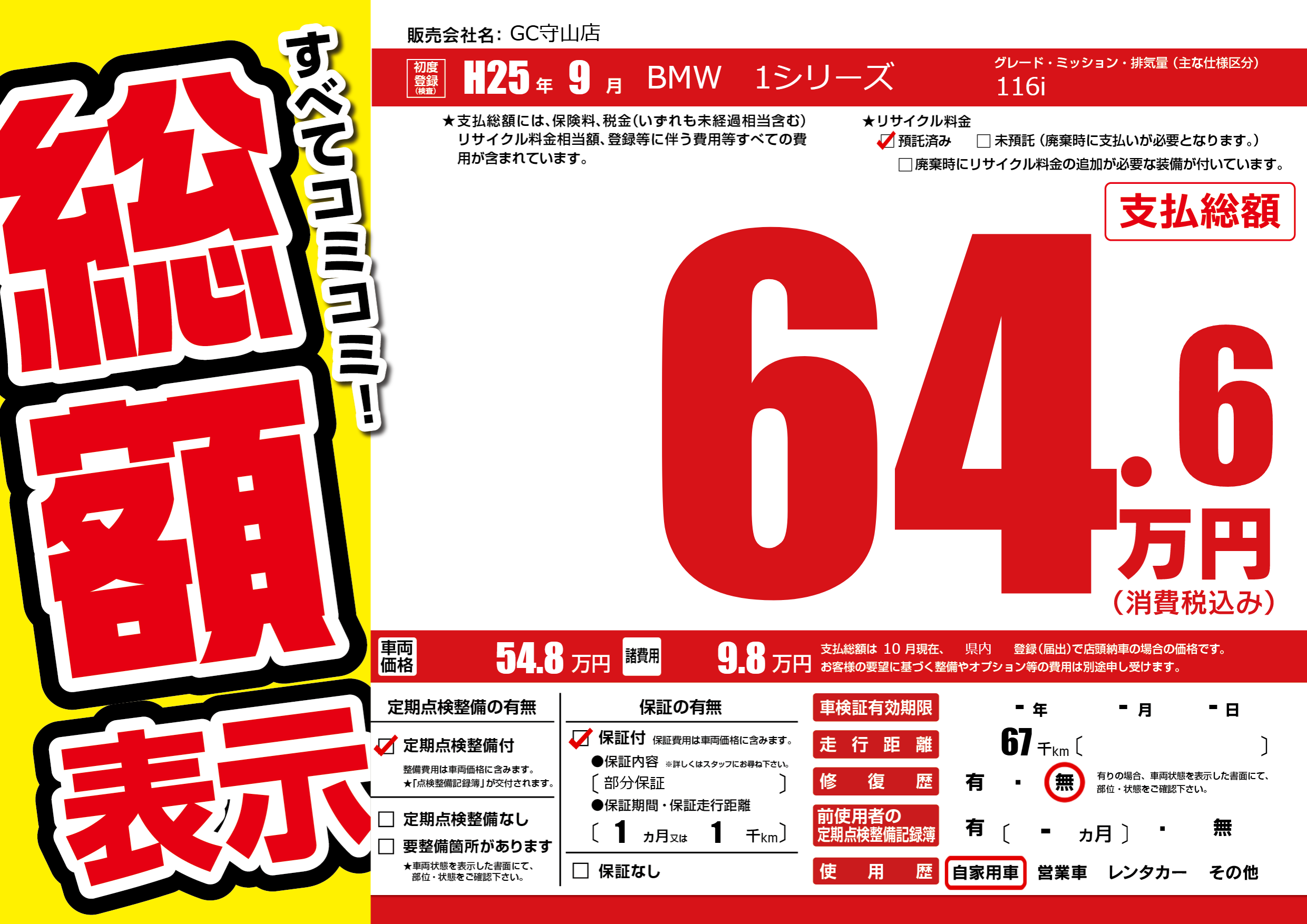 | 納車時の 整備費用 |