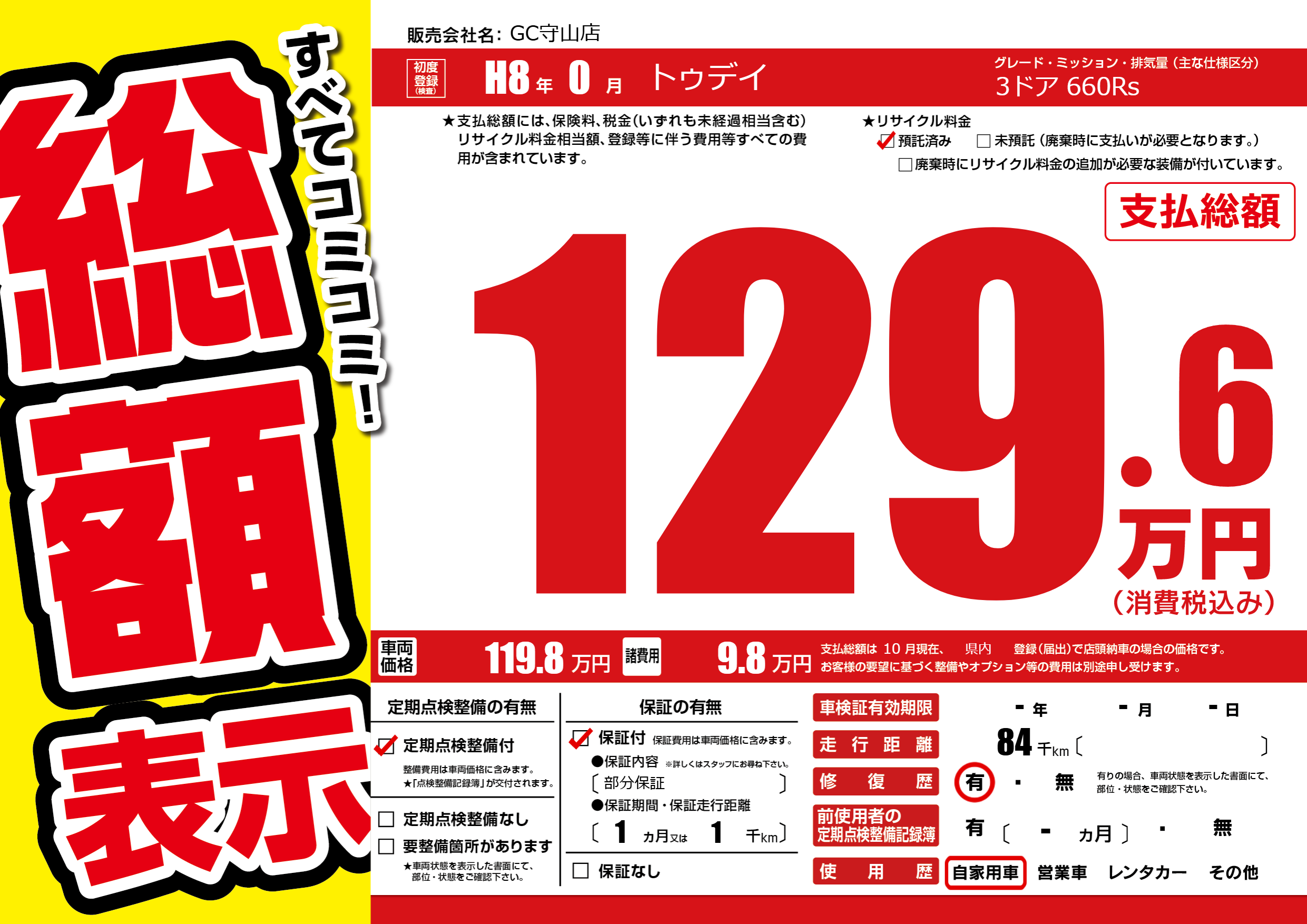 | 車名 | トゥデイ | グレード ミッション 排気量 |