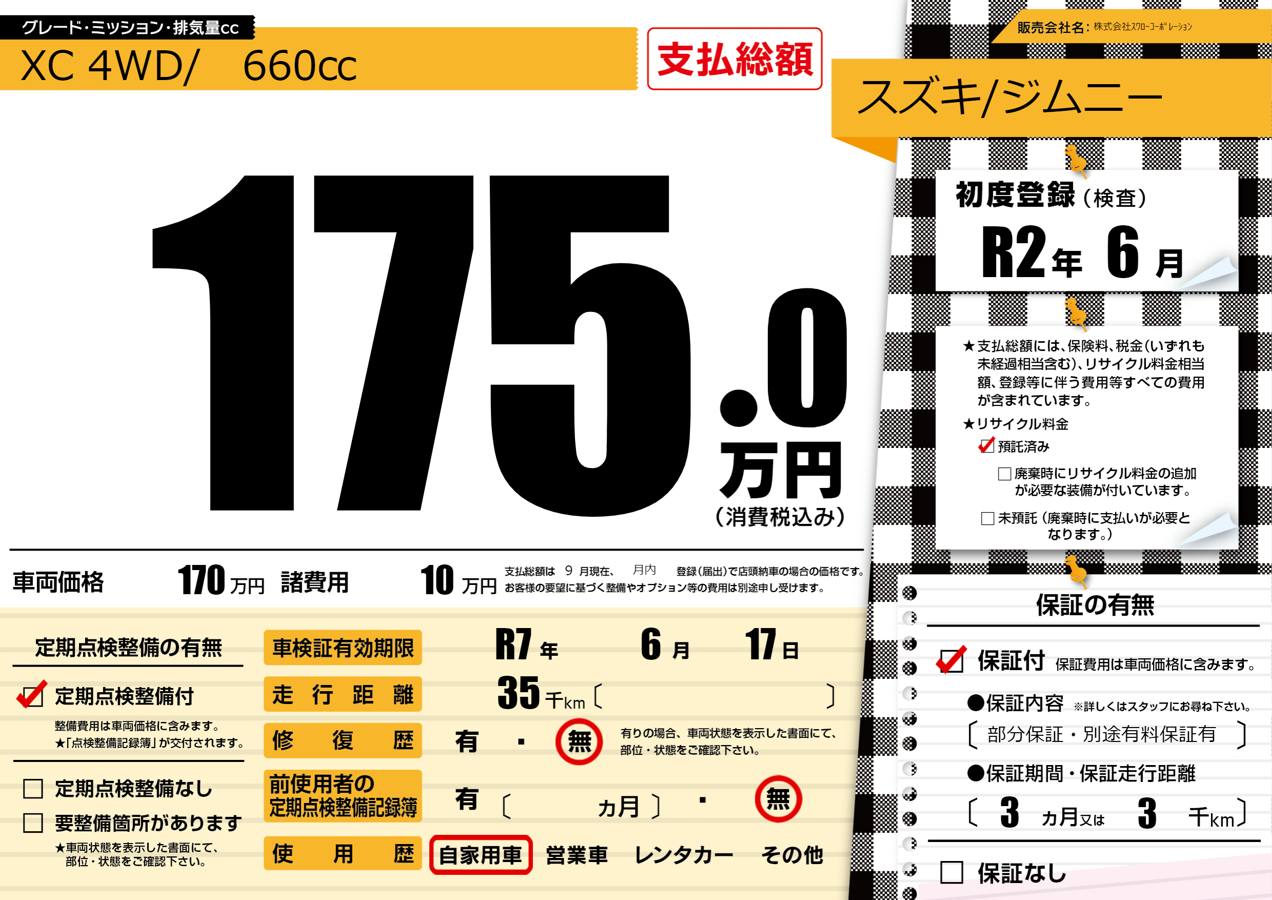 なし | 車検制限 | R7年6月17月 |