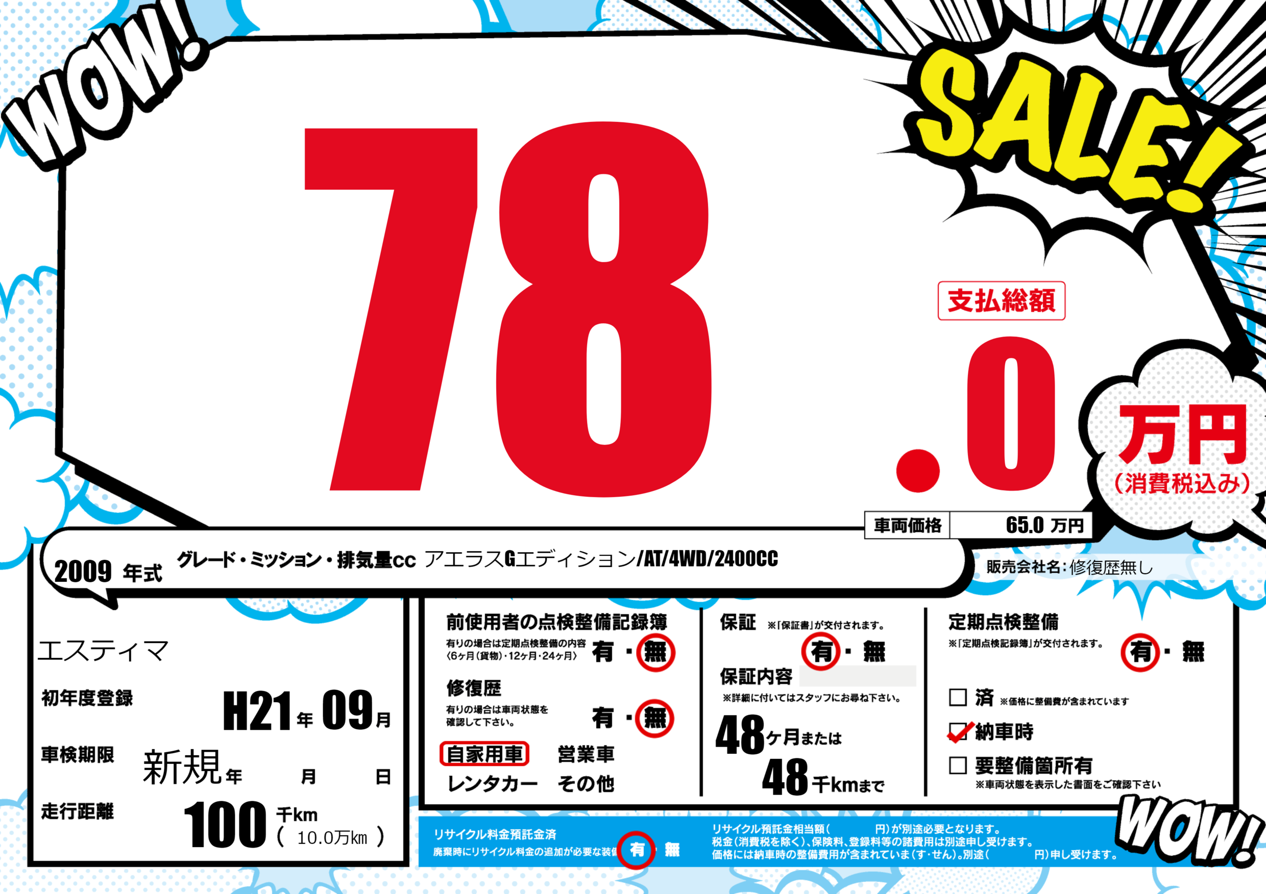 保証付き 保証内容(---) 48ヶ月または(48)千kmまで |