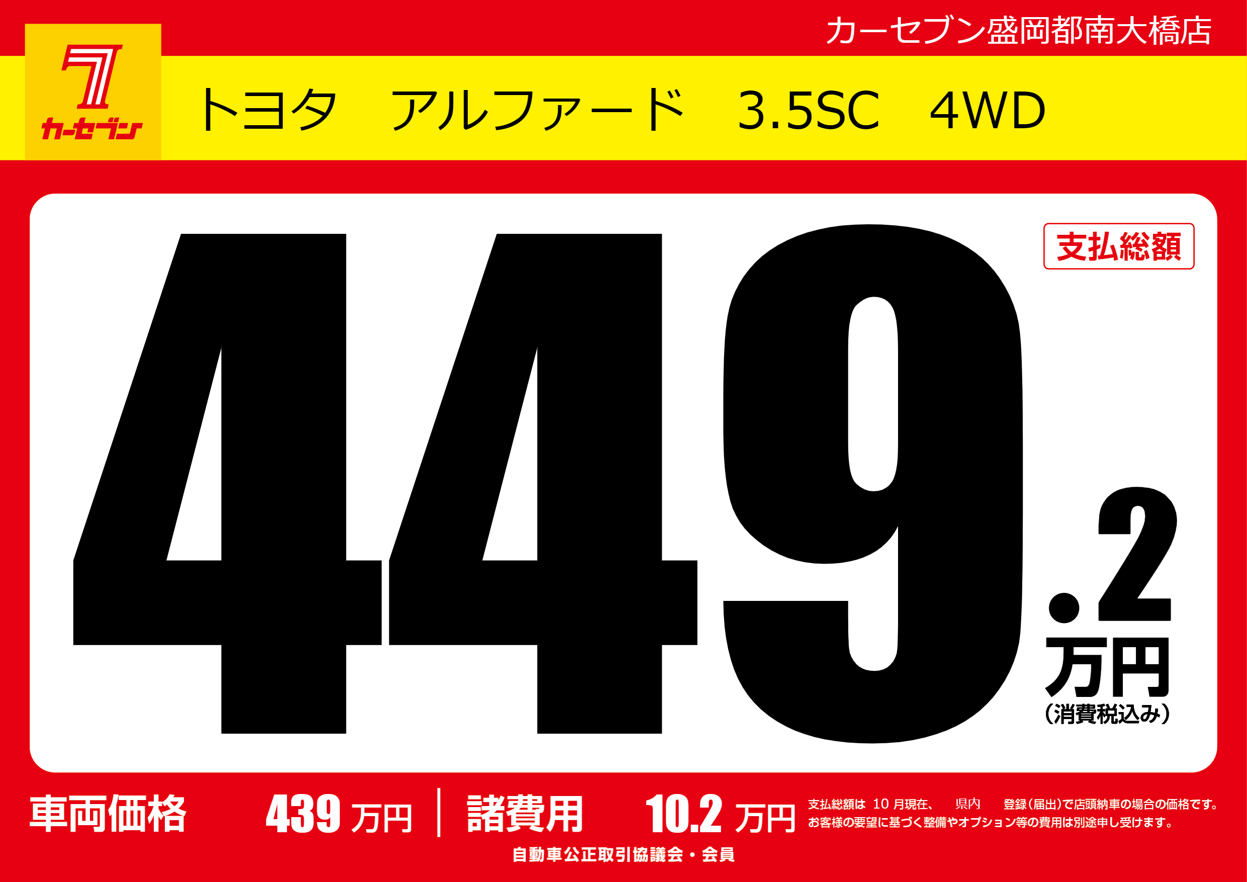 | 車名 | トヨタ アルファード 3.5SC 4WD | グレード ミッション 排気量 |