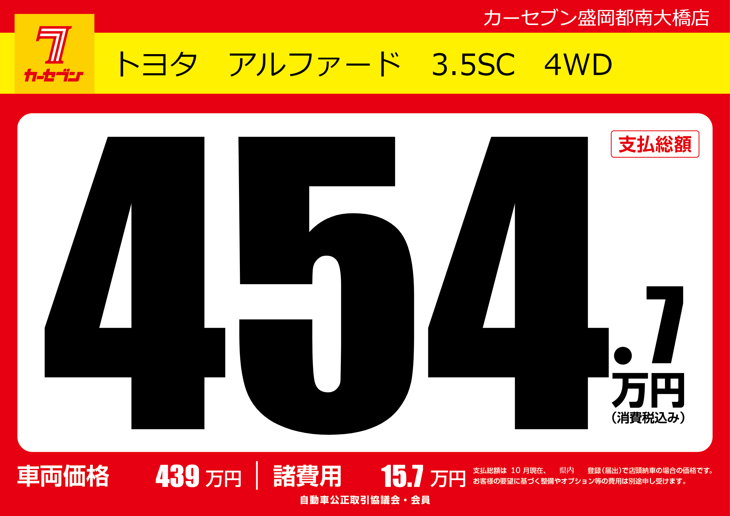 | 車名 | トヨタ アルファード 3.5SC 4WD | グレード ミッション 排気量 |