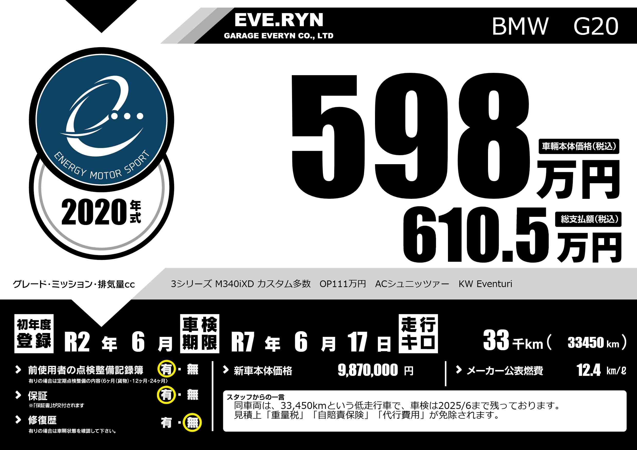 3シリーズ M340iXD カスタム多数 OP111万円 ACシュニッツァー KW Eventuri |