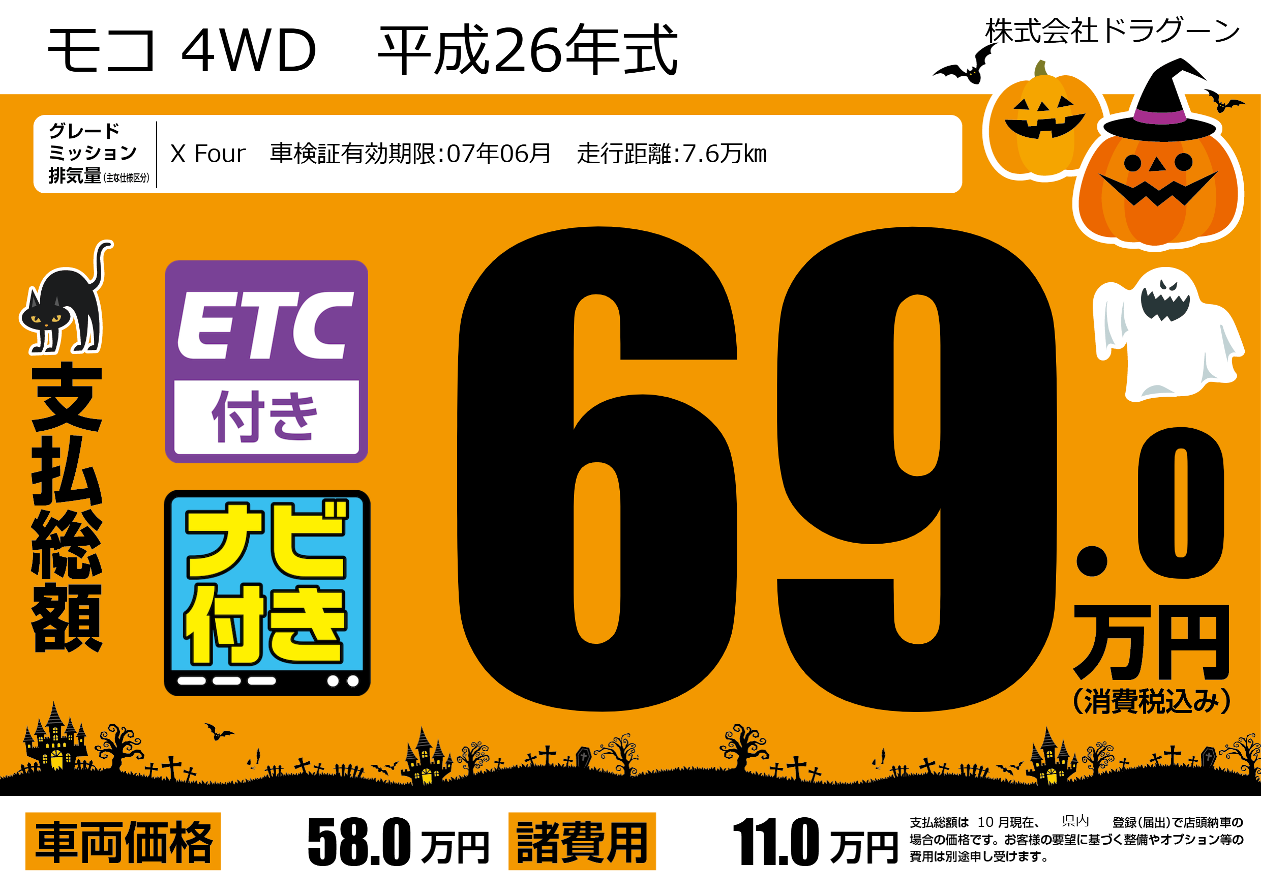 | 車名 | モコ 4WD 平成26年式 | グレード ミッション 排気量 |