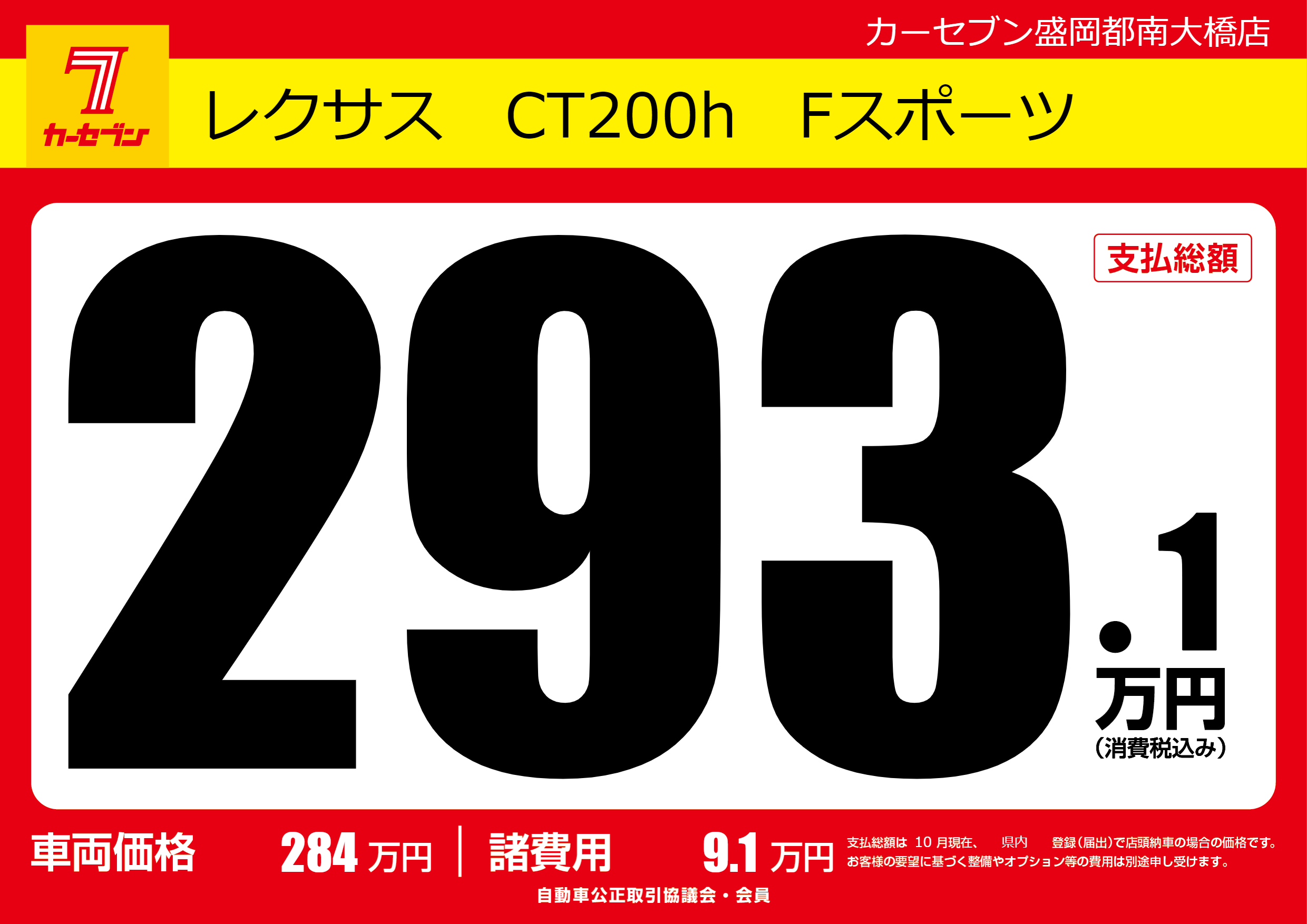 | 車名 | レクサス CT200h Fスポーツ | グレード ミッション 排気量 |