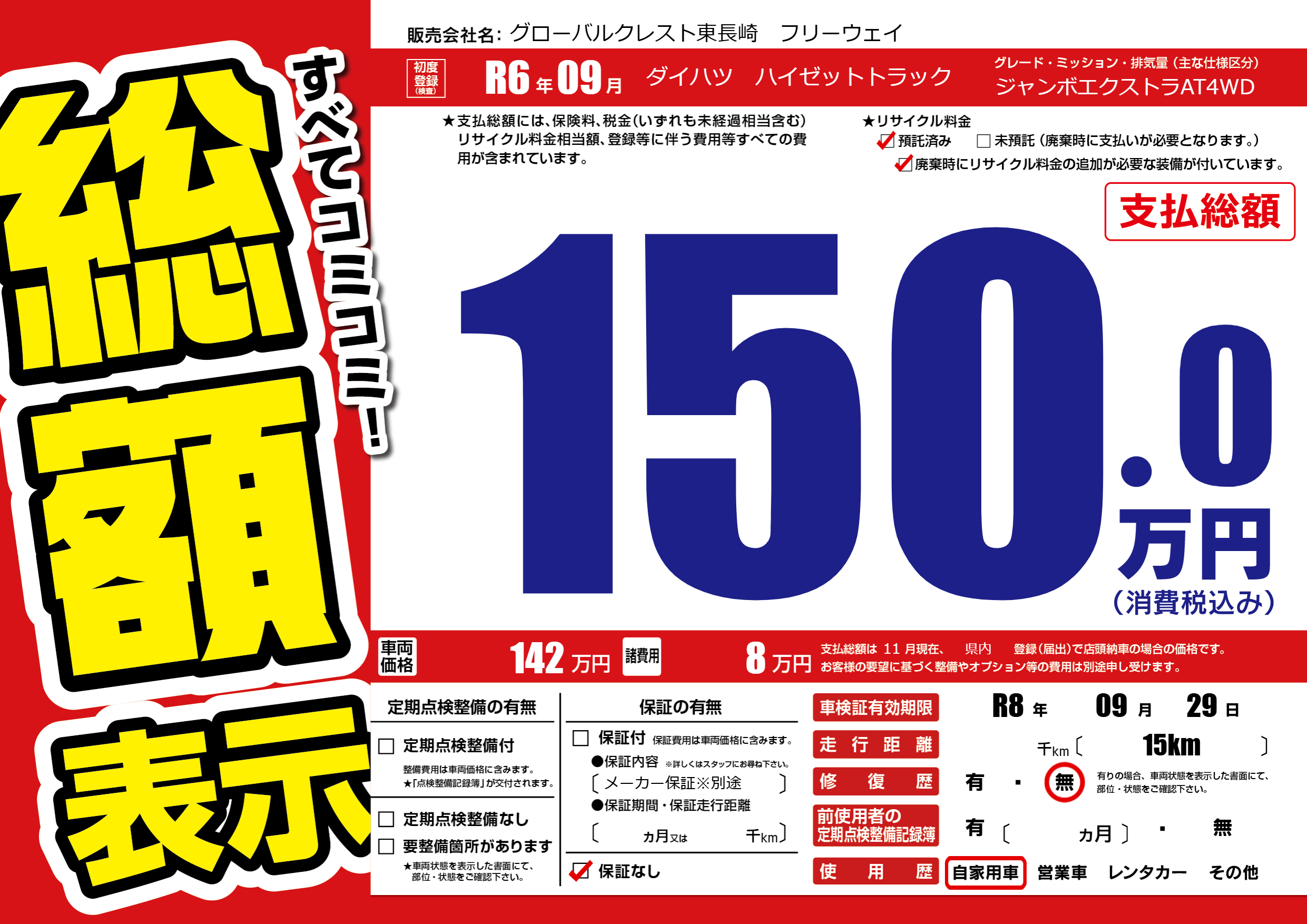 | 走行キロ | - | 初年度登録 | R6年09月 |