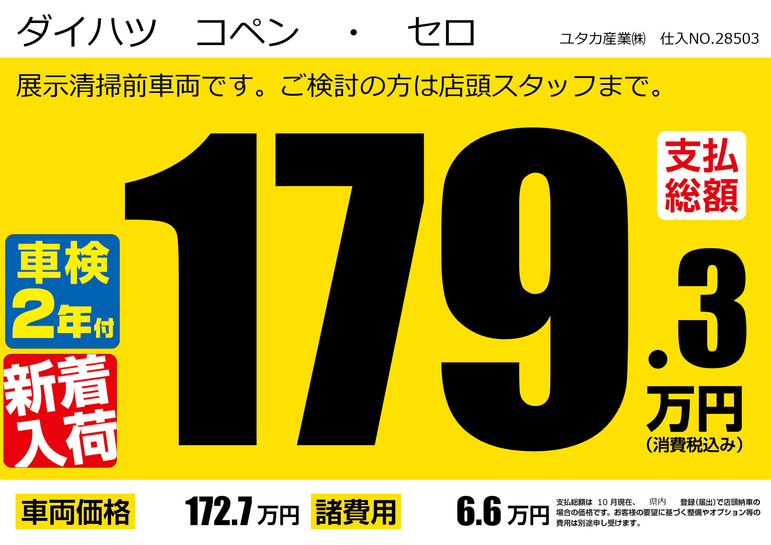 | 車名 | ダイハツ コペン ・ セロ | グレード ミッション 排気量 |