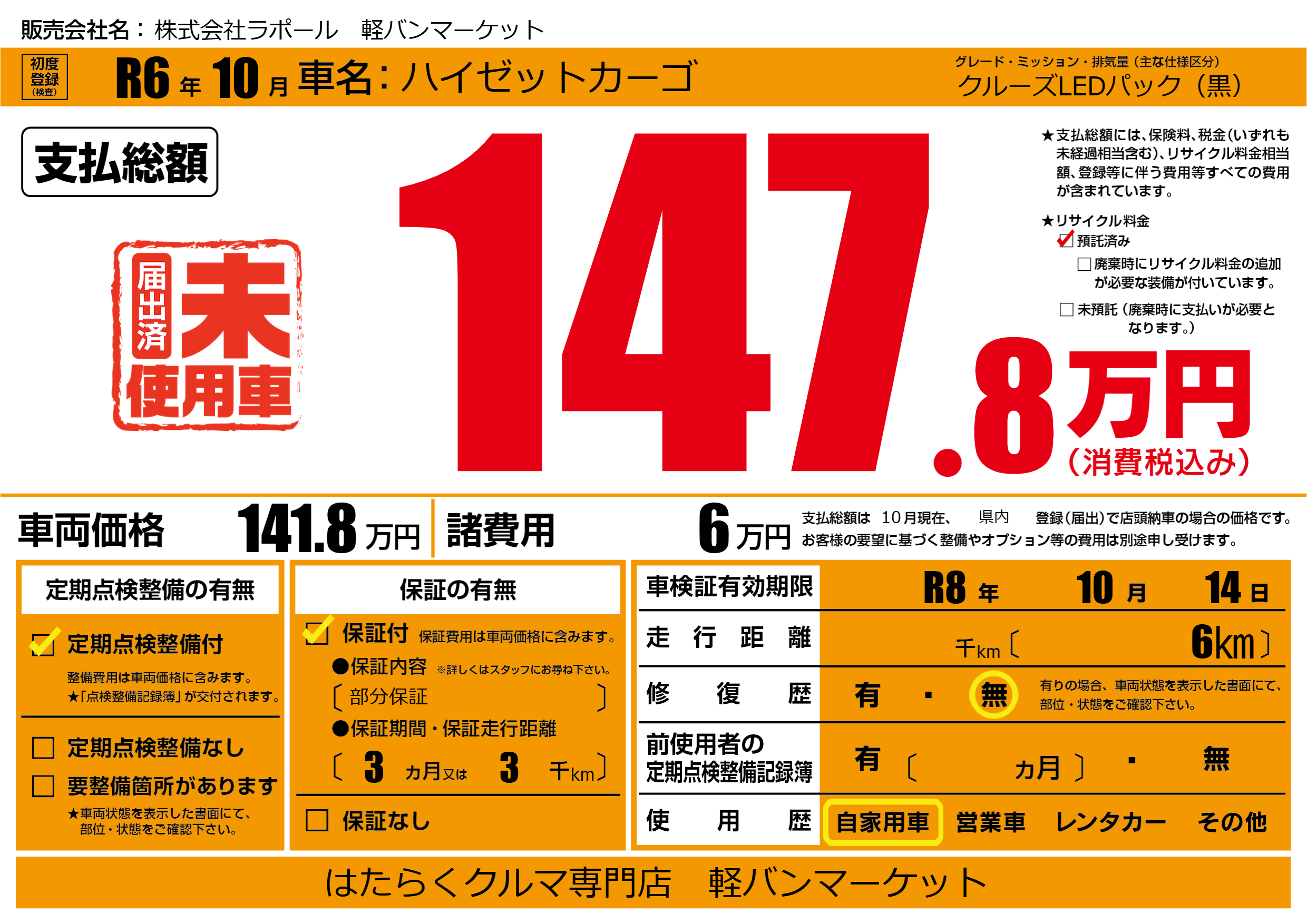 | 車検制限 | R8年 10月 14日 | ||
