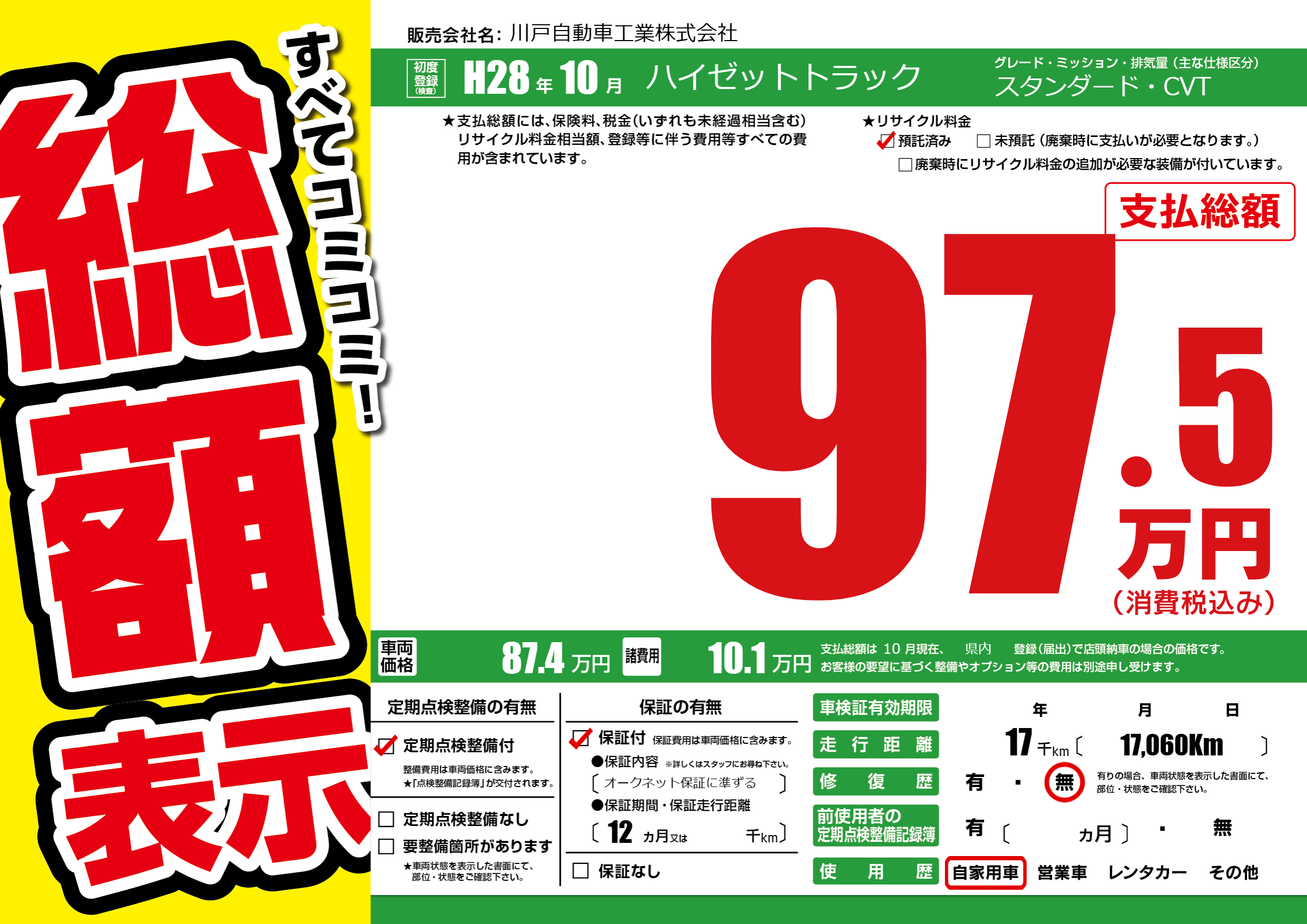 | 車名 | ハイゼットトラック | グレード ミッション 排気量 |