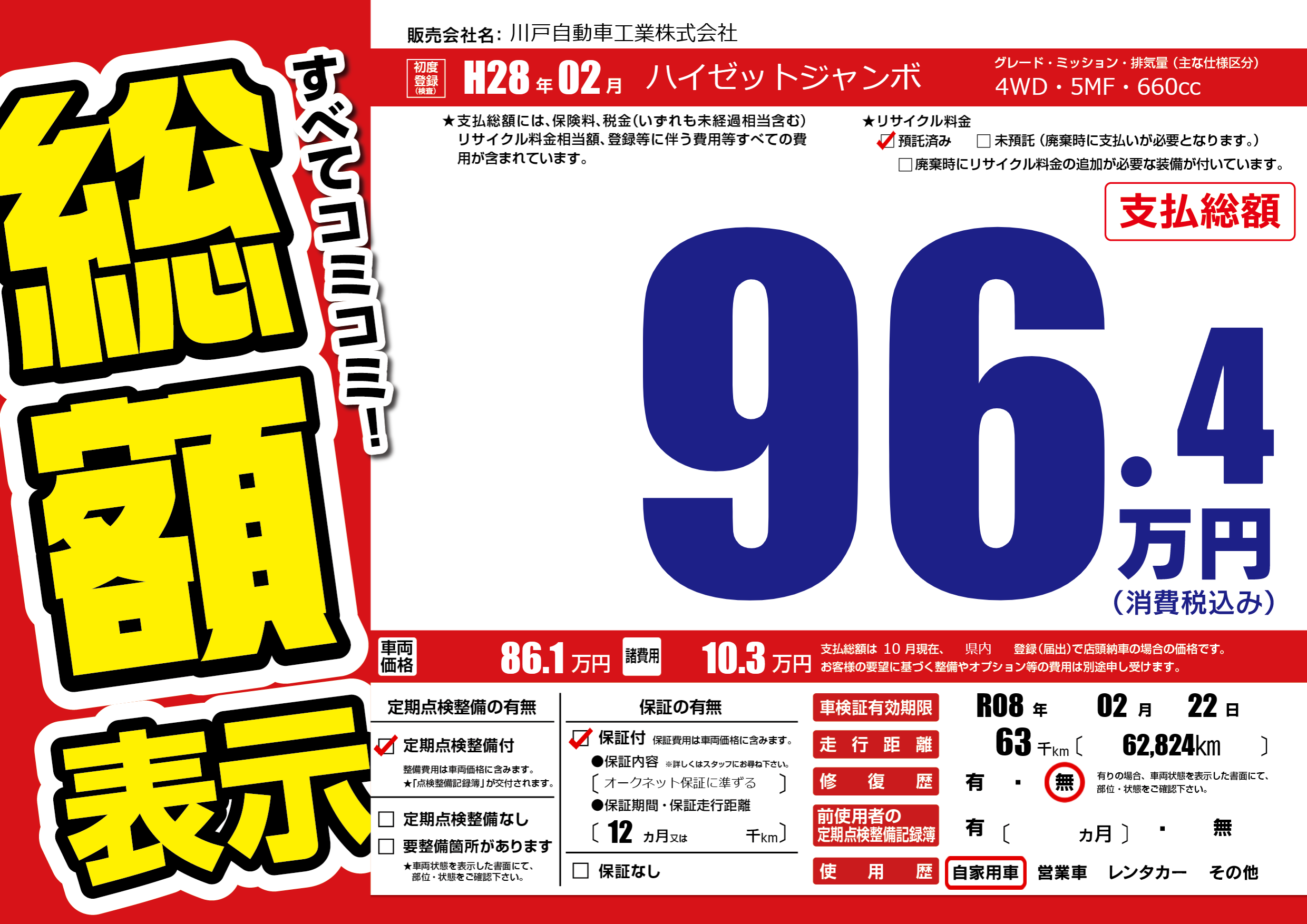 なし | 車検制限 | R08年02月22月 |