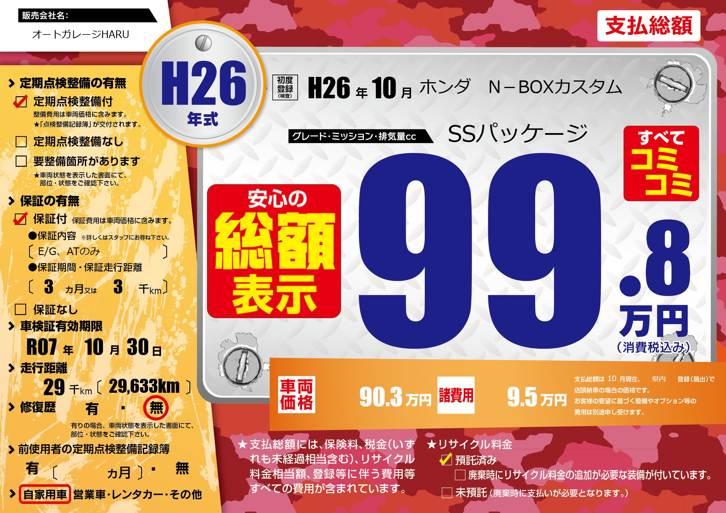 | 車検制限 | R07年 10月 30日 | ||