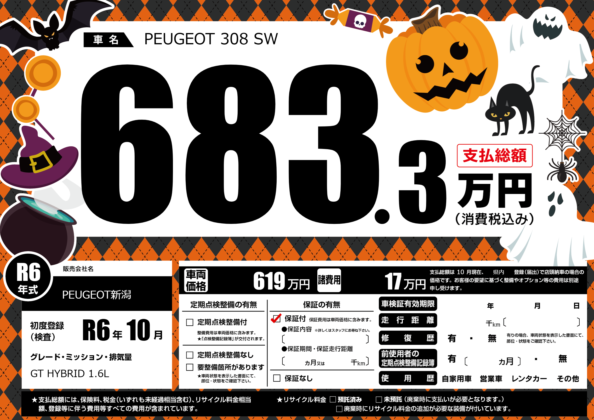 | 車名 | PEUGEOT 308 SW | グレード ミッション 排気量 |