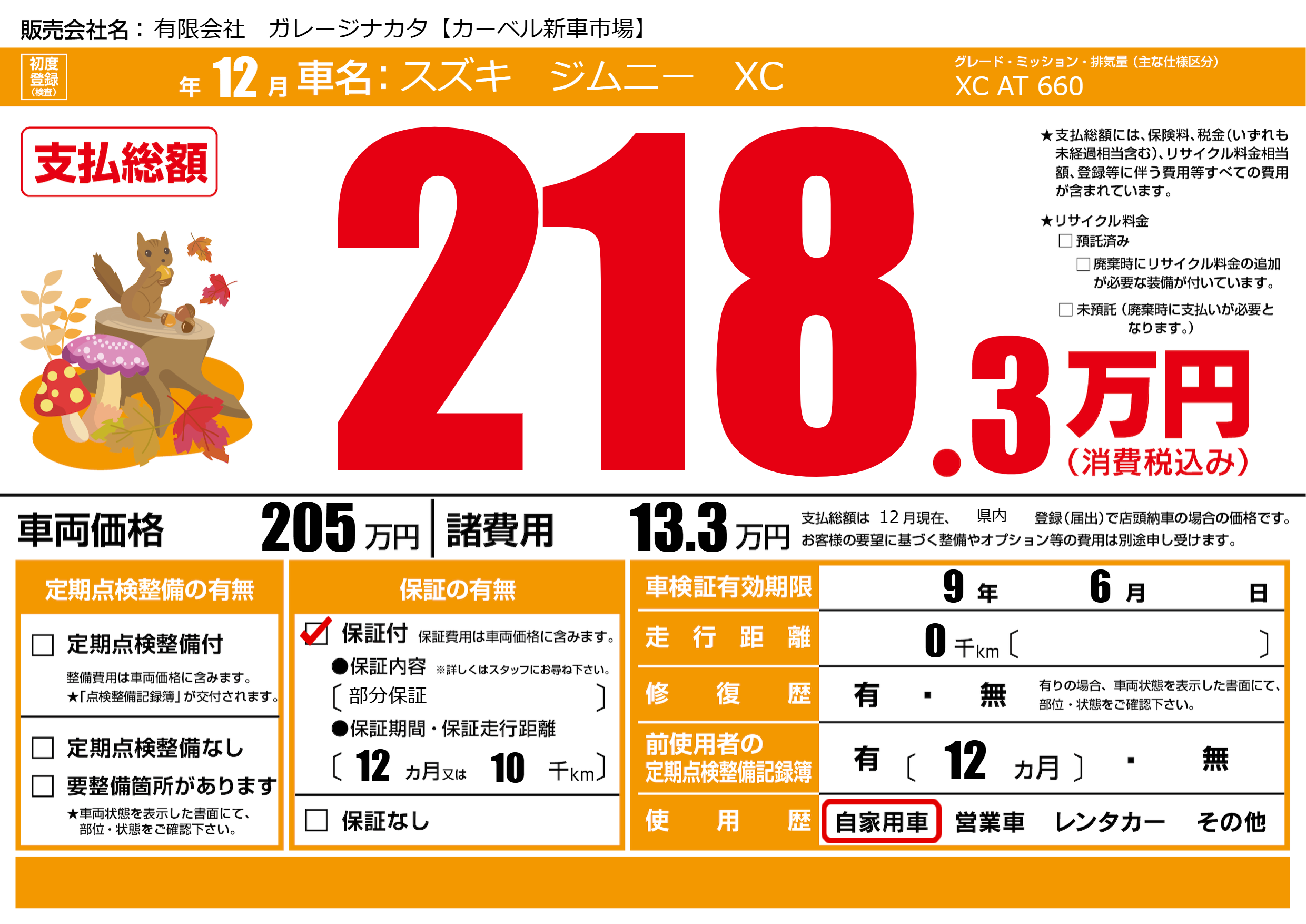 保証付き 保証内容(部分保証) 12ヶ月または(10)千kmまで |