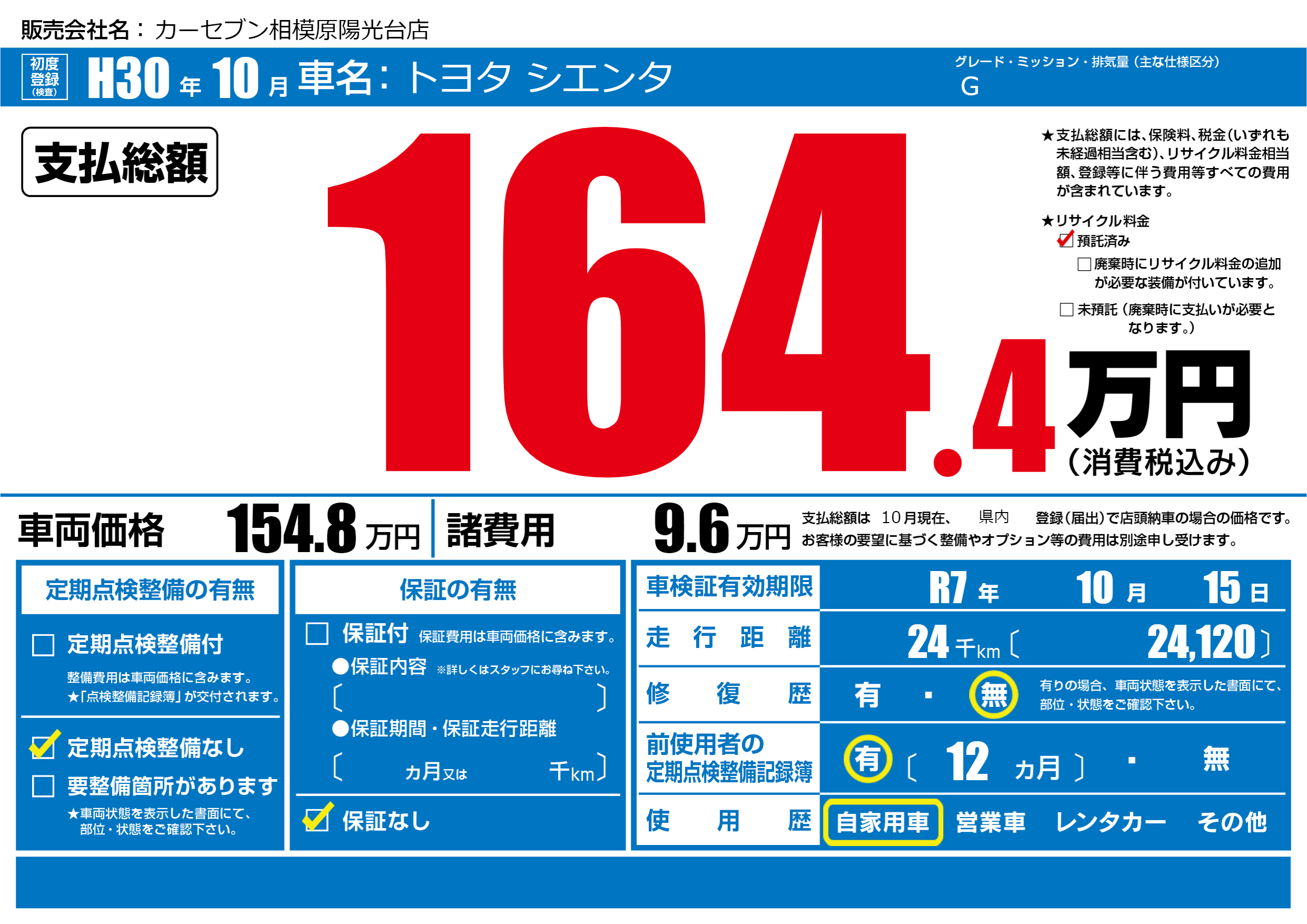なし | 車検制限 | R7年10月15月 |