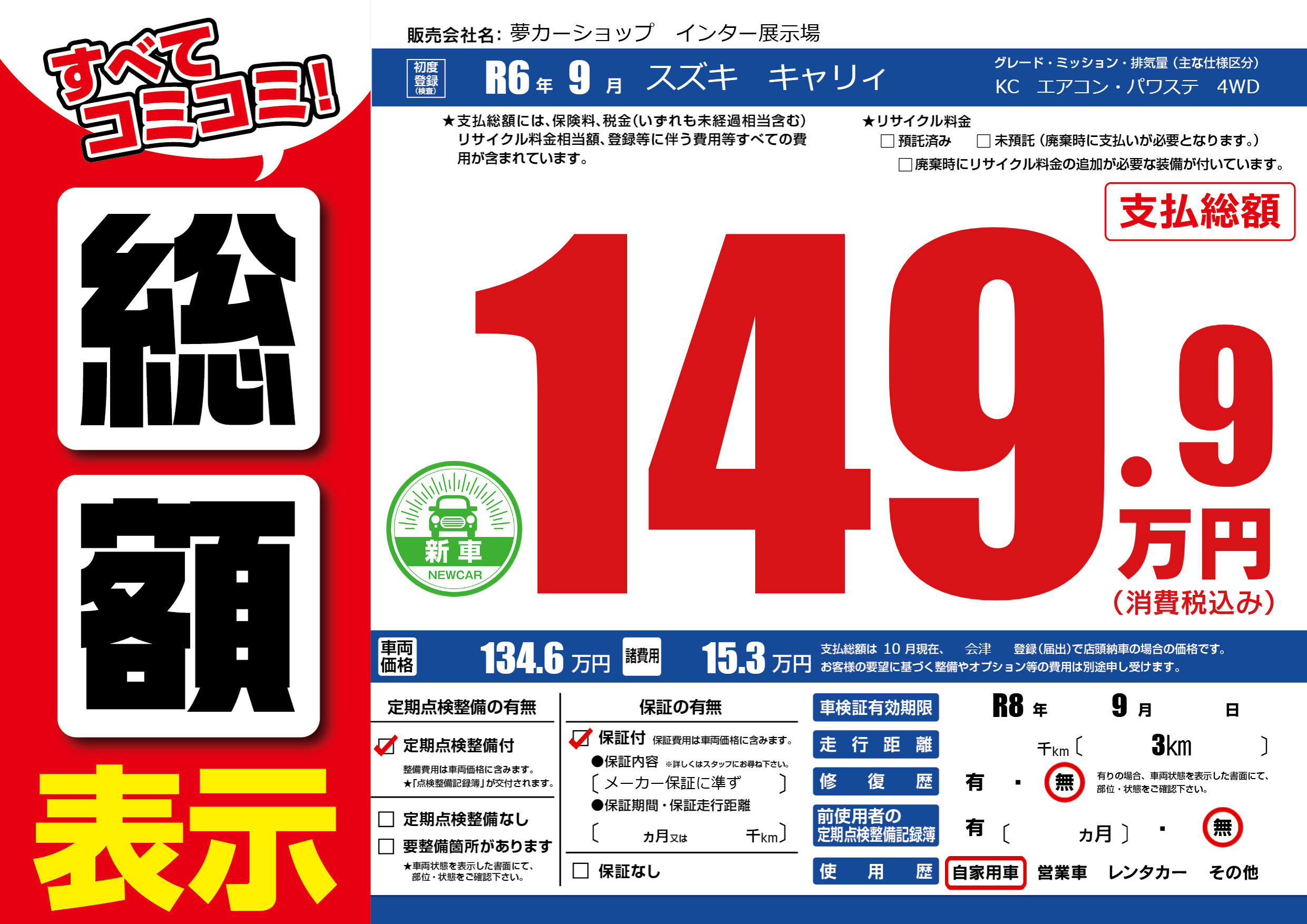 | 走行キロ | - | 初年度登録 | R6年9月 |