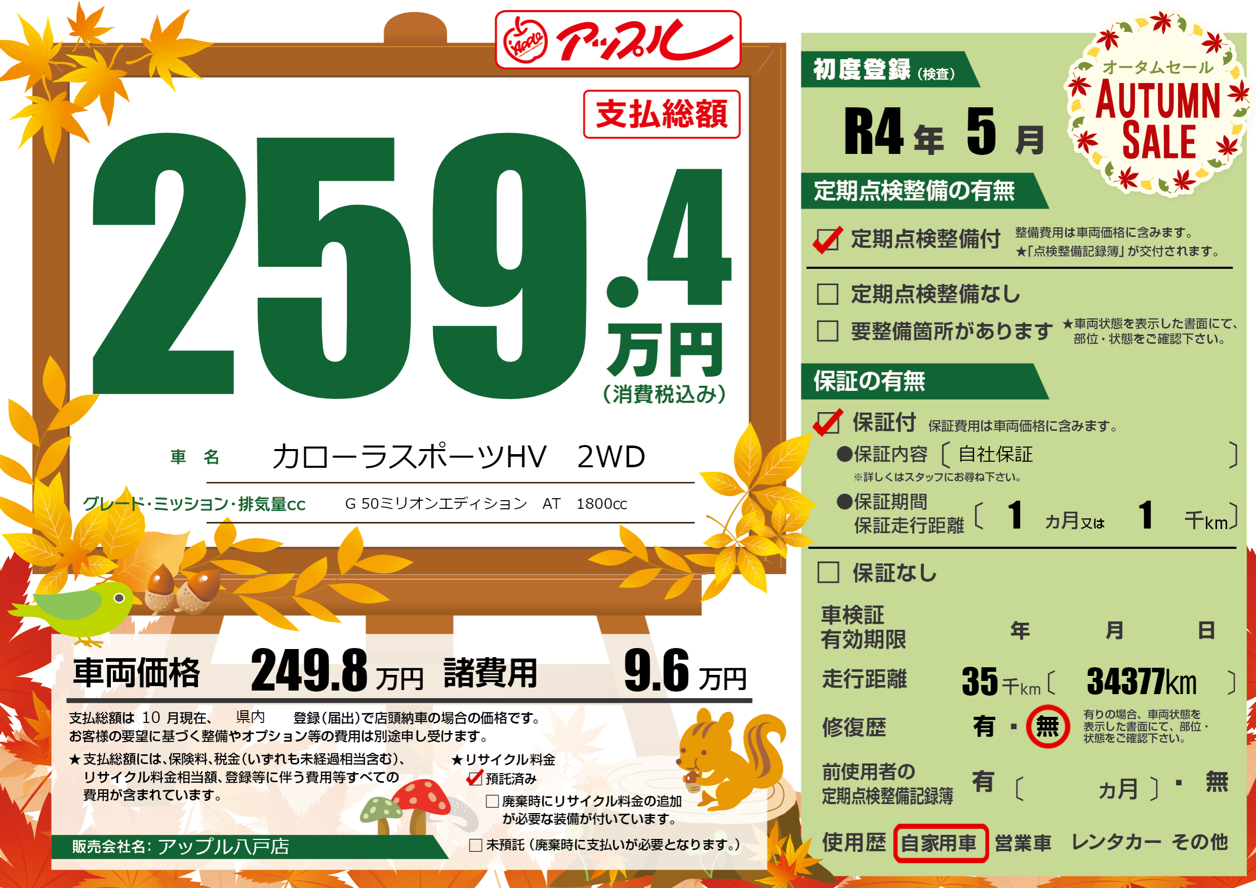 保証付き 保証内容(自社保証) 1ヶ月または(1)千kmまで |