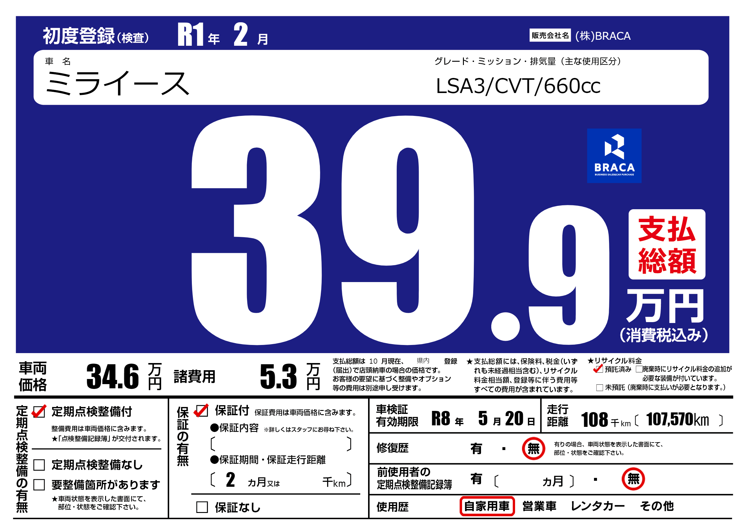 | 定期点検整備 | 定期点検整備あり | ||