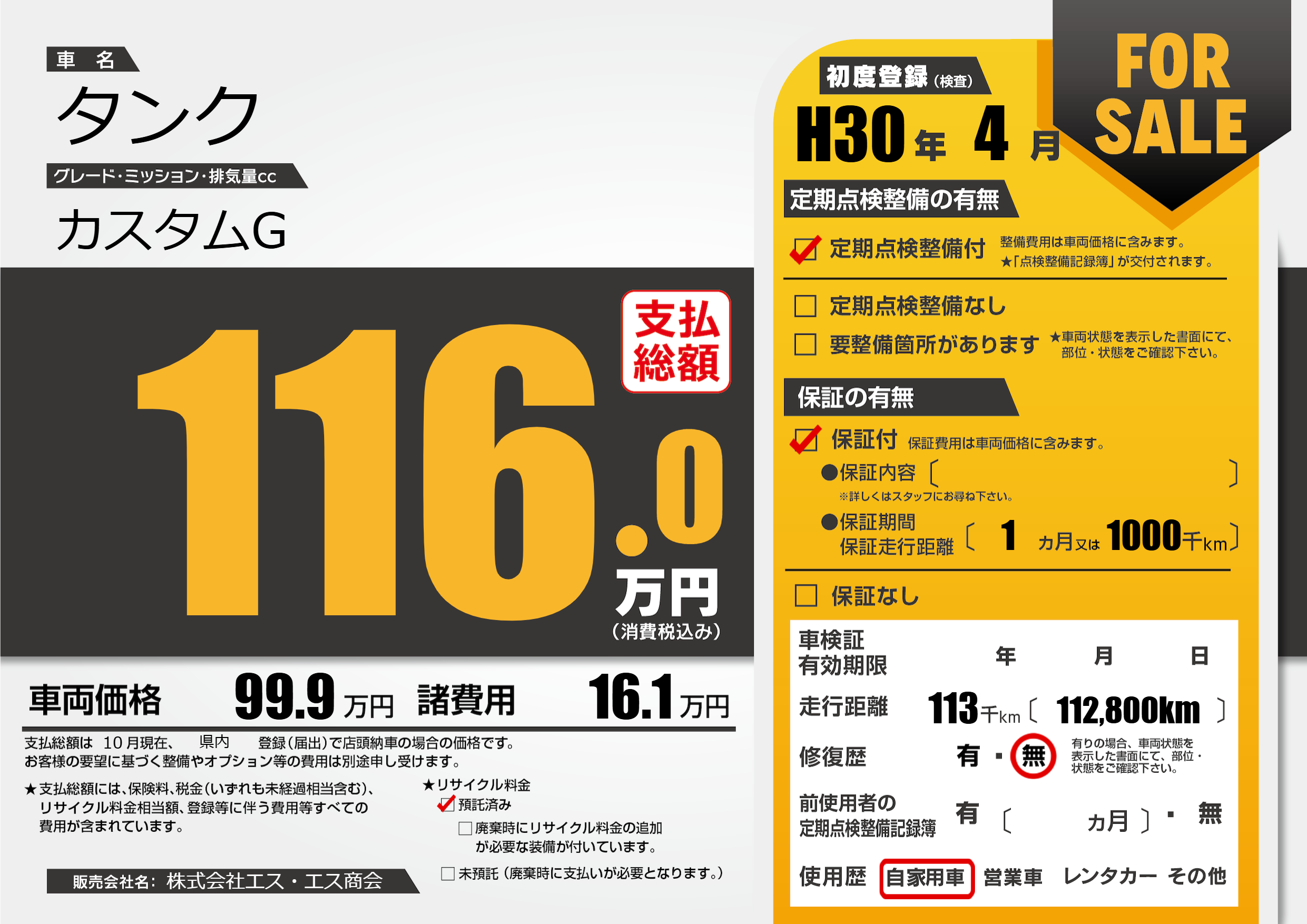 | 走行キロ | 11.3万km | 初年度登録 | H30年4月 |
