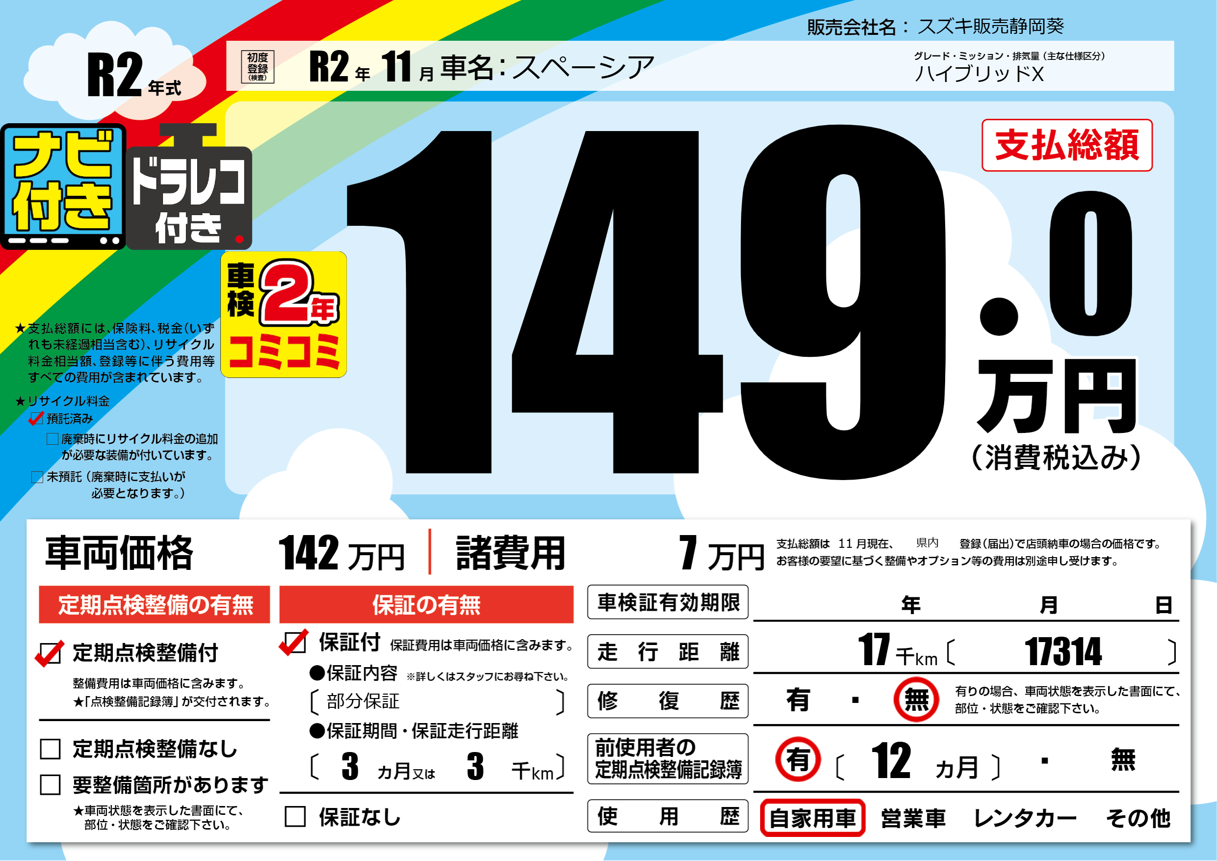 | 走行キロ | 1.7万km | 初年度登録 | R2年11月 |