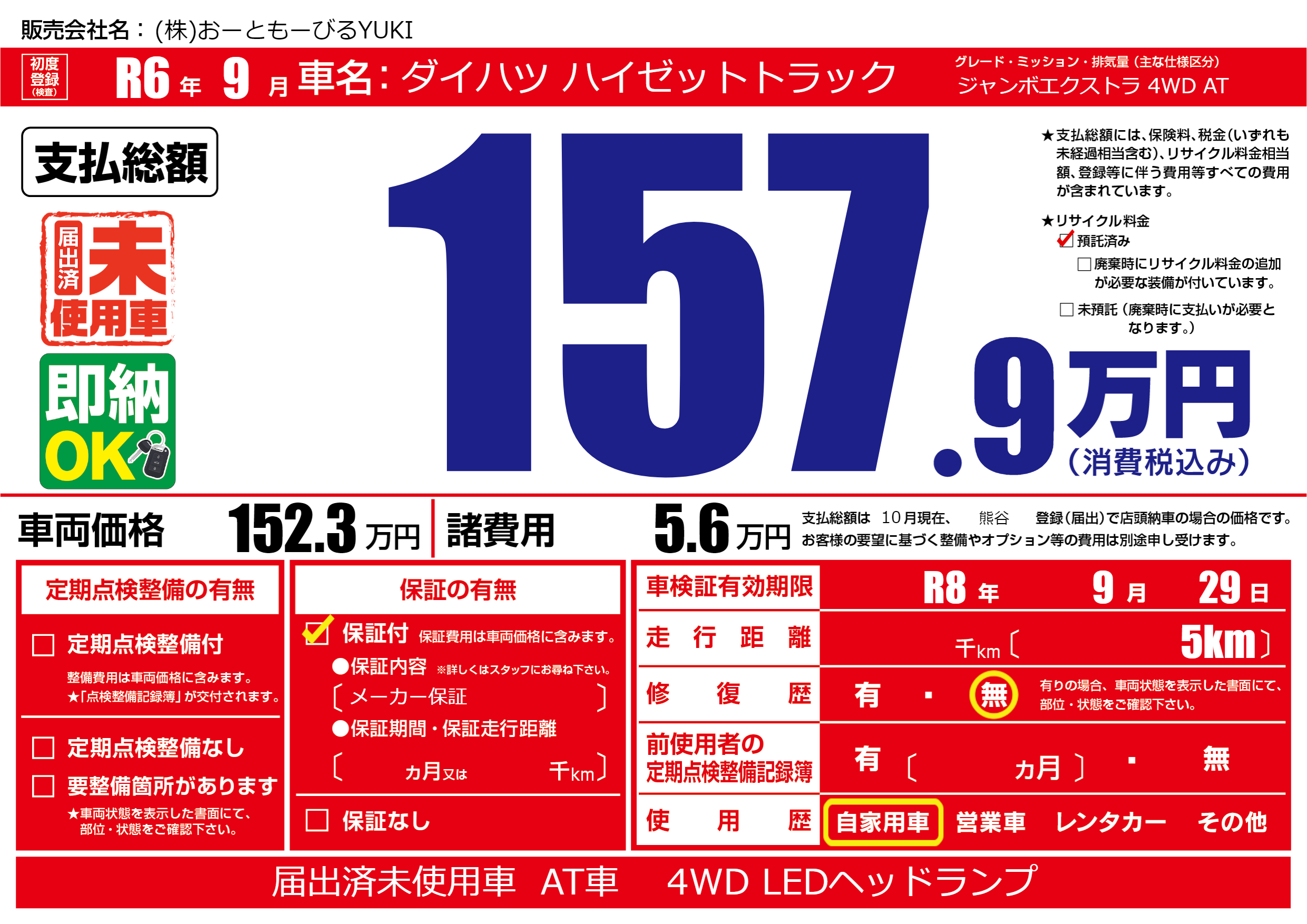 初年度登録 R6年9月
