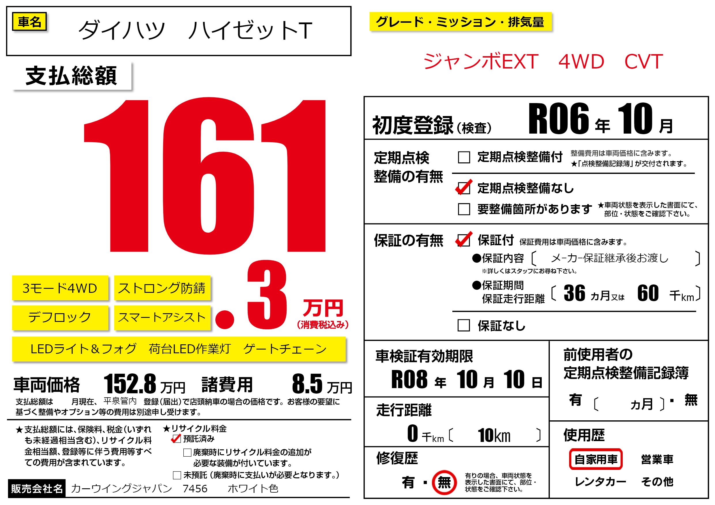 | 走行キロ | - | 初年度登録 | R06年10月 |