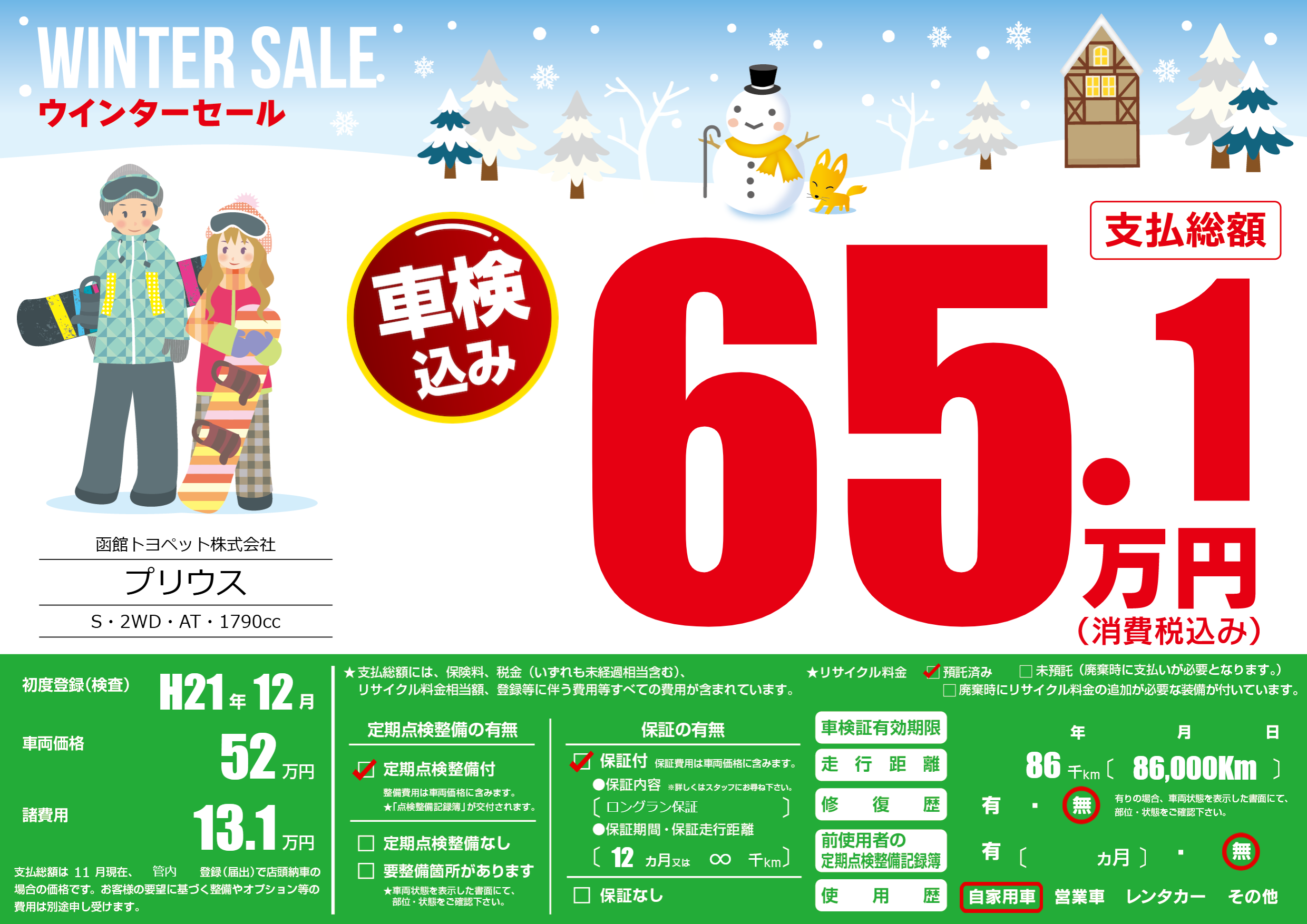 | 走行キロ | 8.6万km | 初年度登録 | H21年12月 |