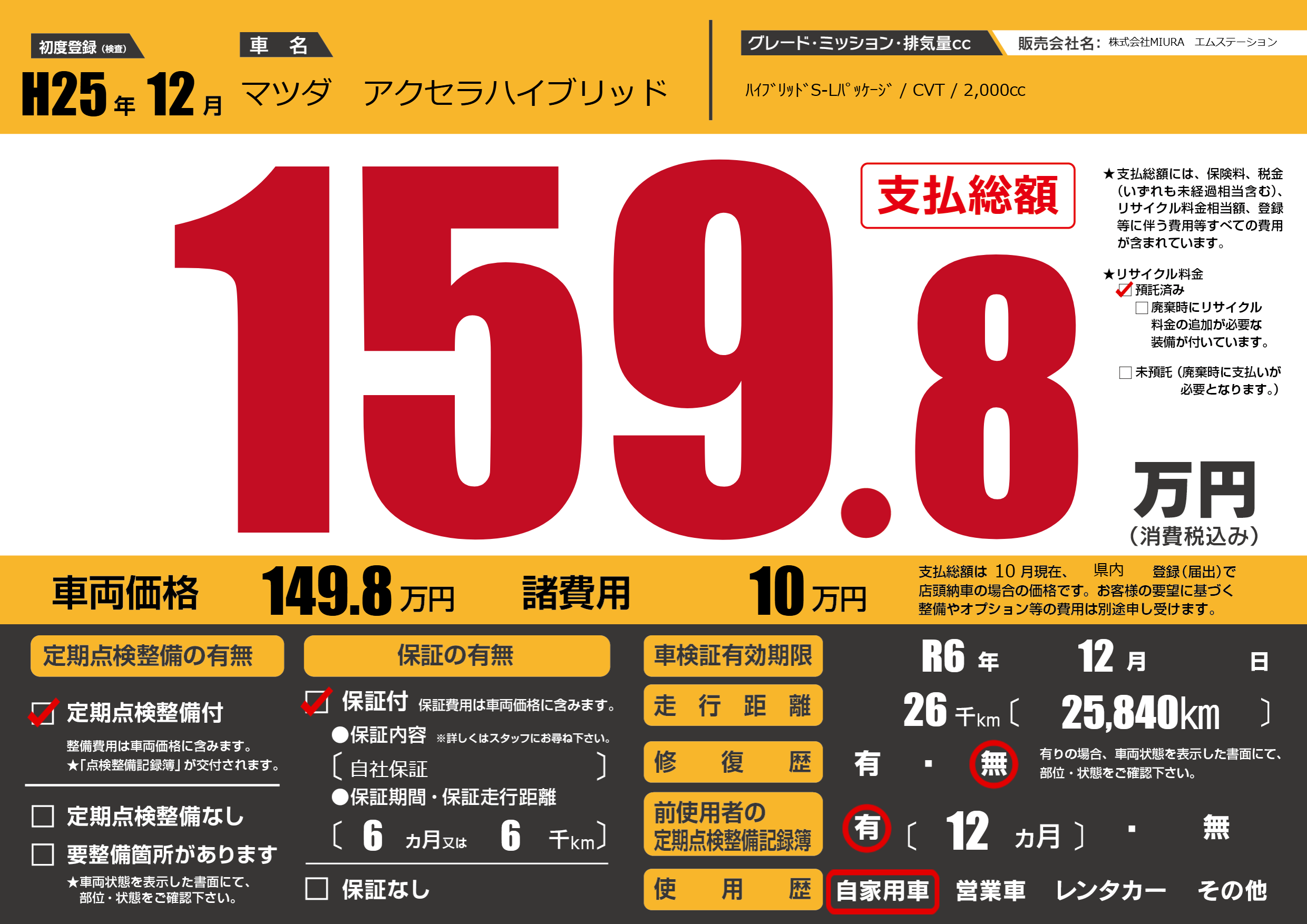 保証付き 保証内容(自社保証) 6ヶ月または6千km |