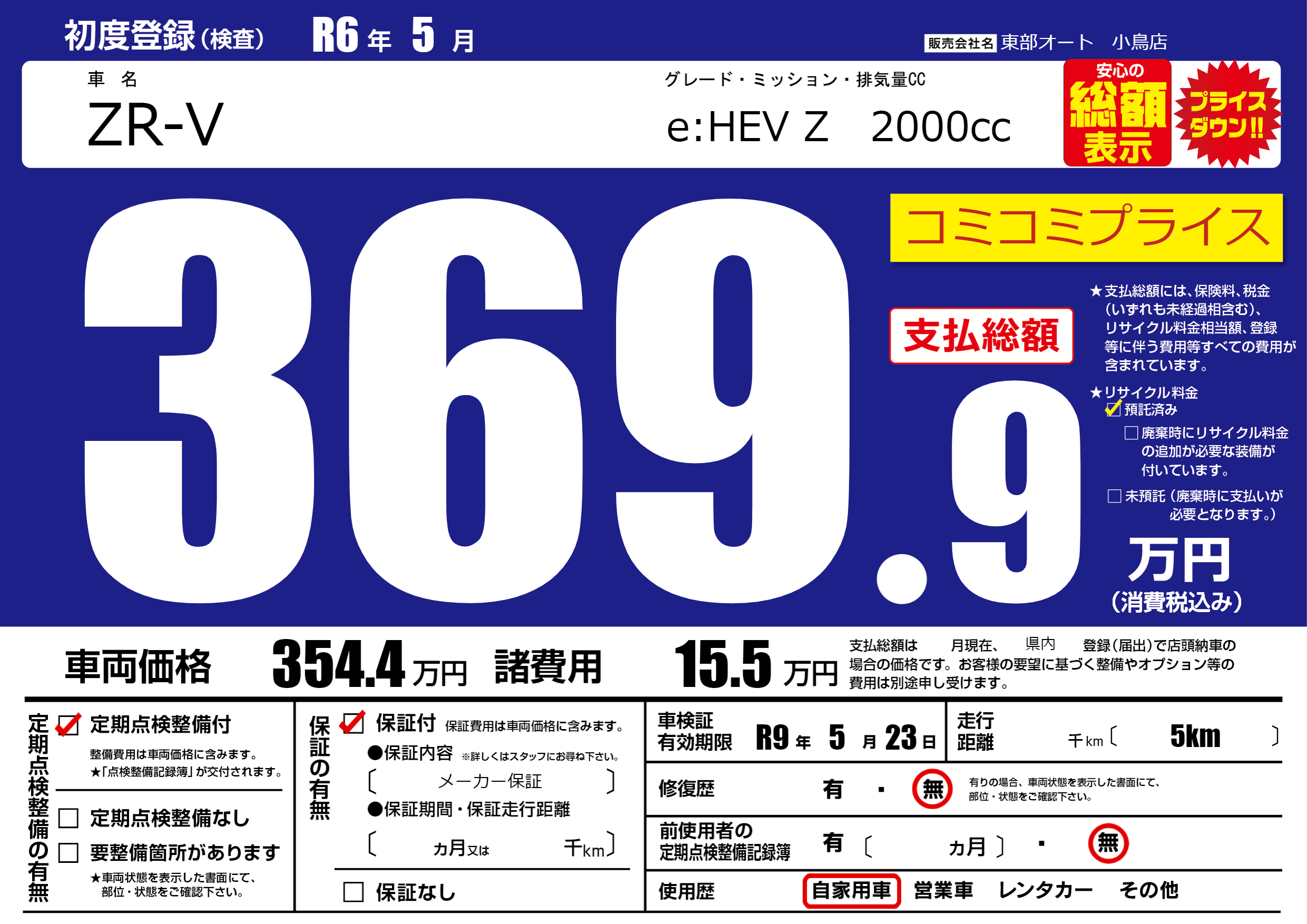なし | 車検制限 | R9年5月23月 |