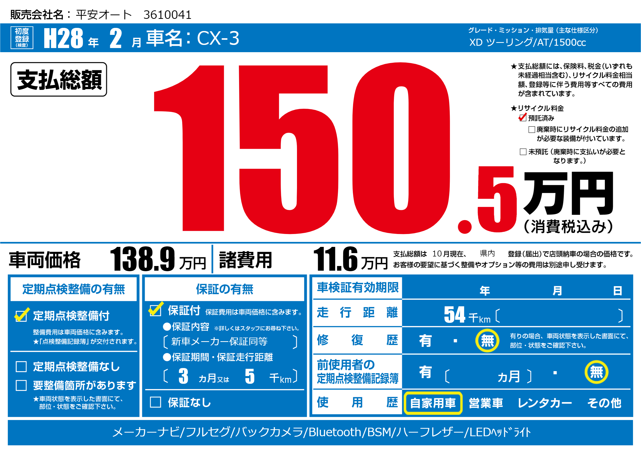 | 車名 | CX-3 | グレード ミッション 排気量 |