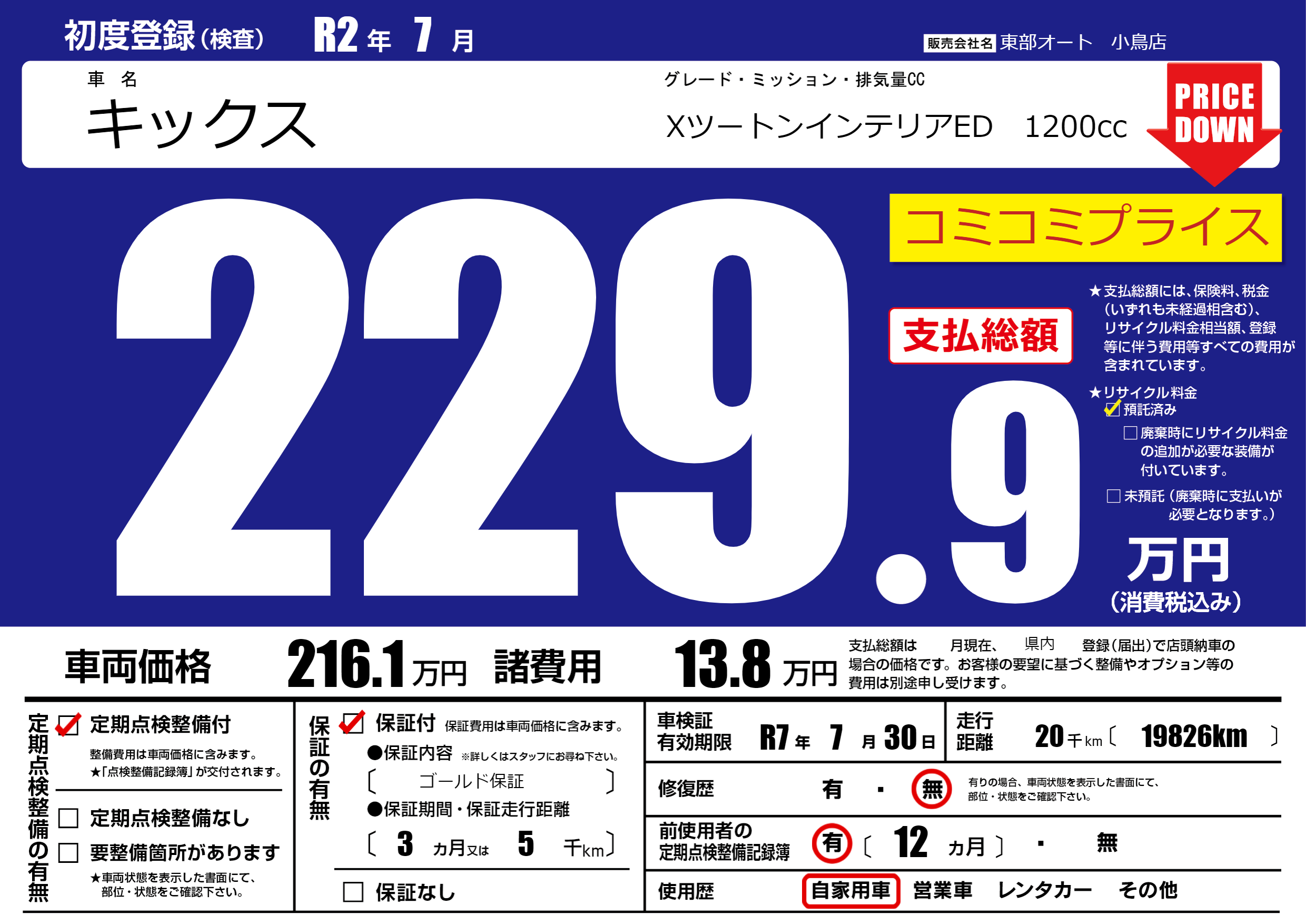 | 走行キロ | 2万km | ||