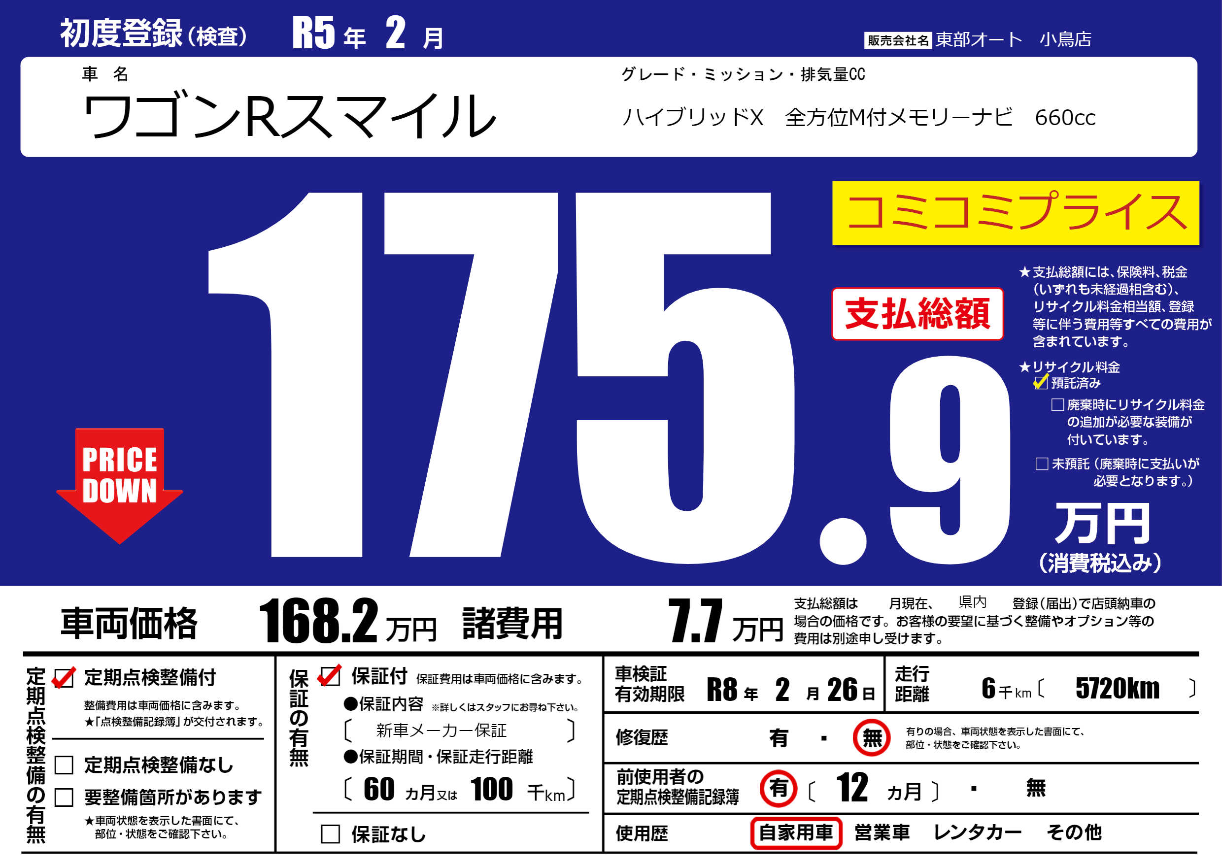 保証内容( 新車メーカー保証) 60ヶ月または100千km