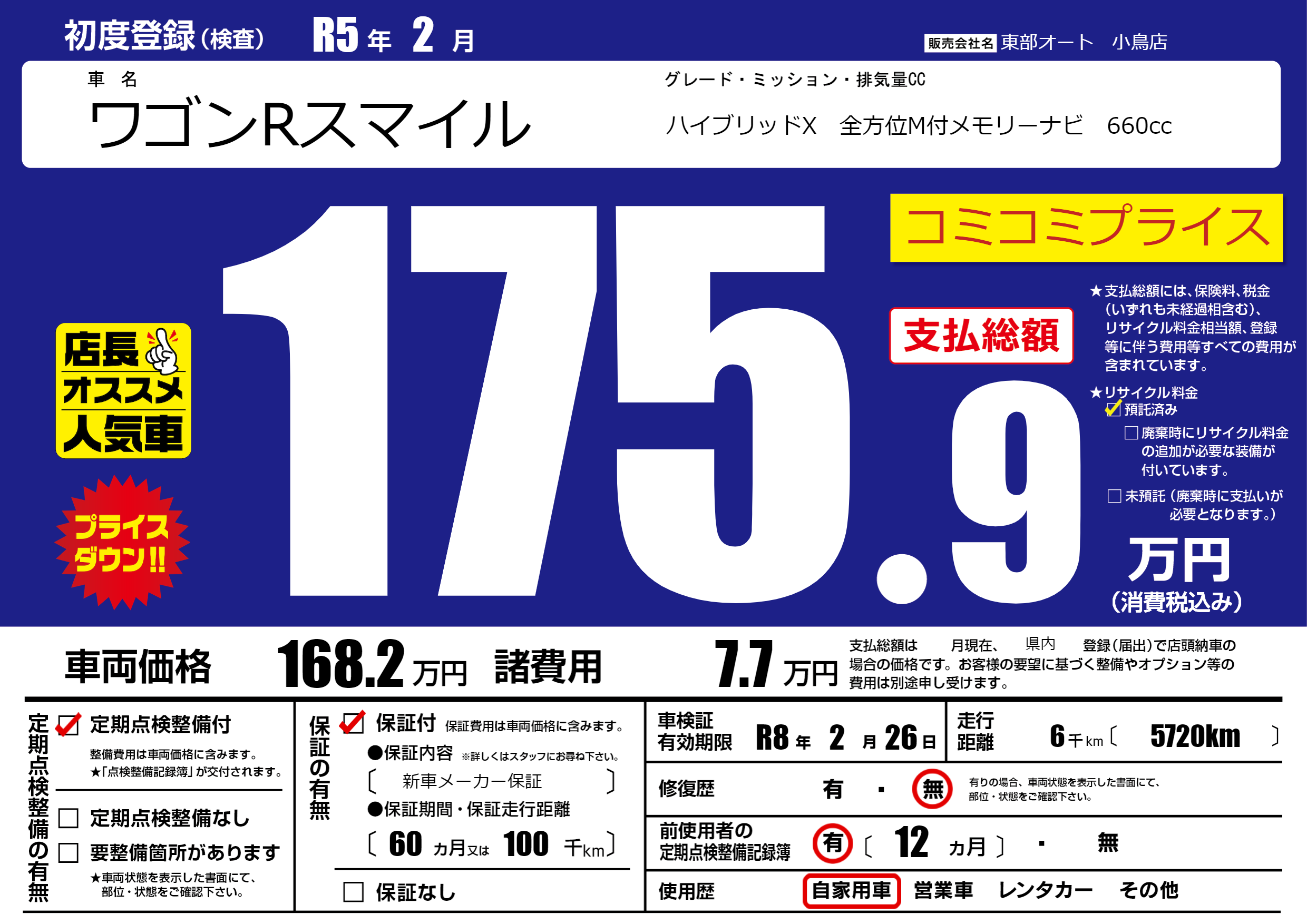 なし | 車検制限 | R8年2月26月 |