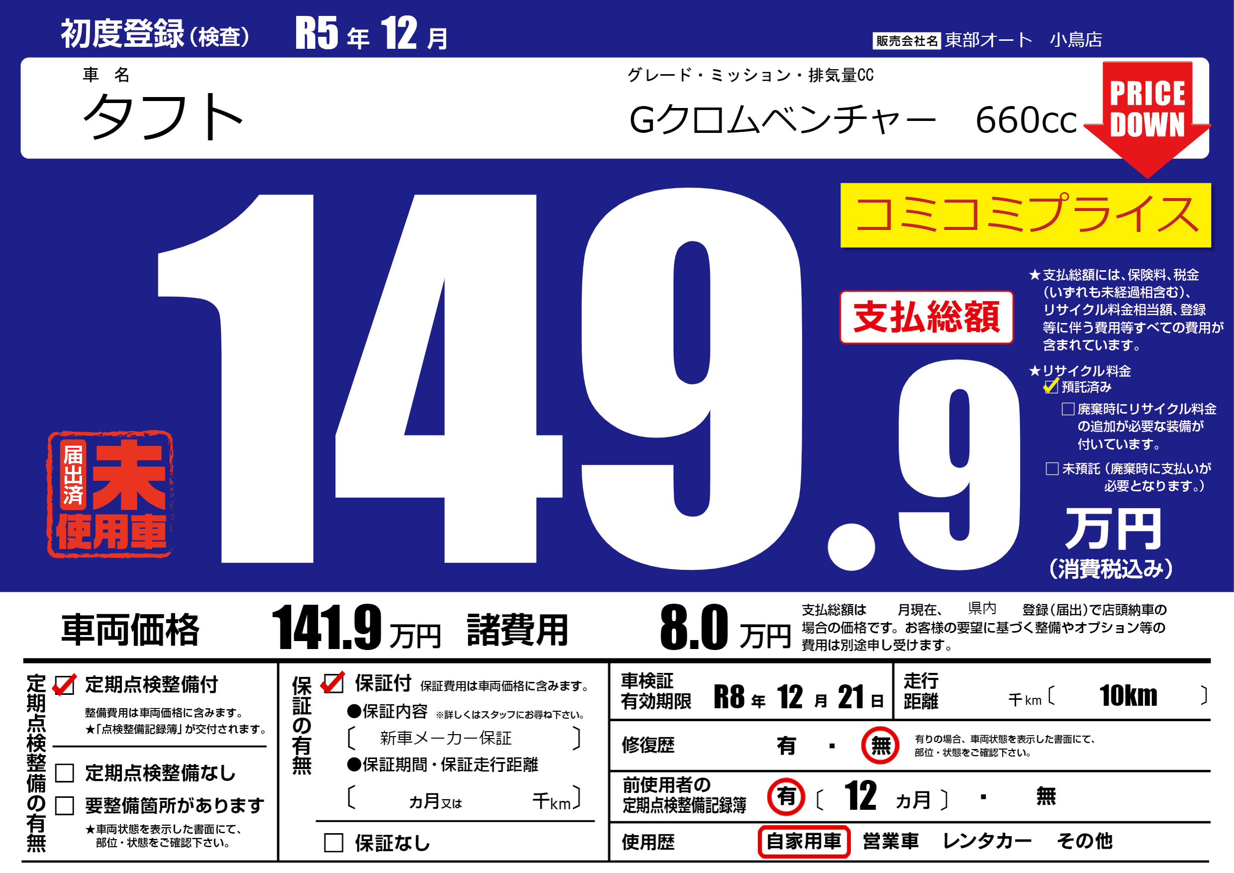 | 走行キロ | - | 初年度登録 | R5年12月 |