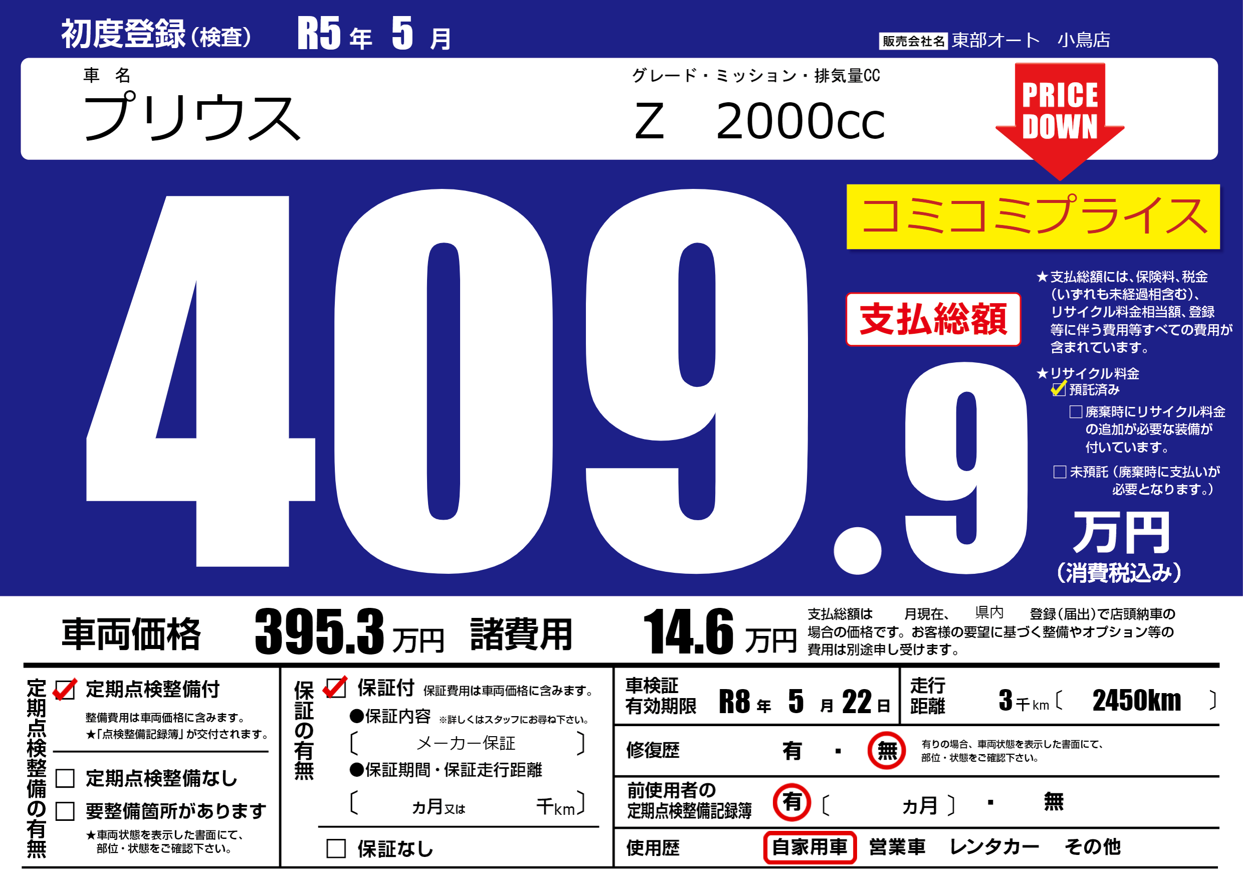 | 定期点検整備 | 定期点検整備あり | ||